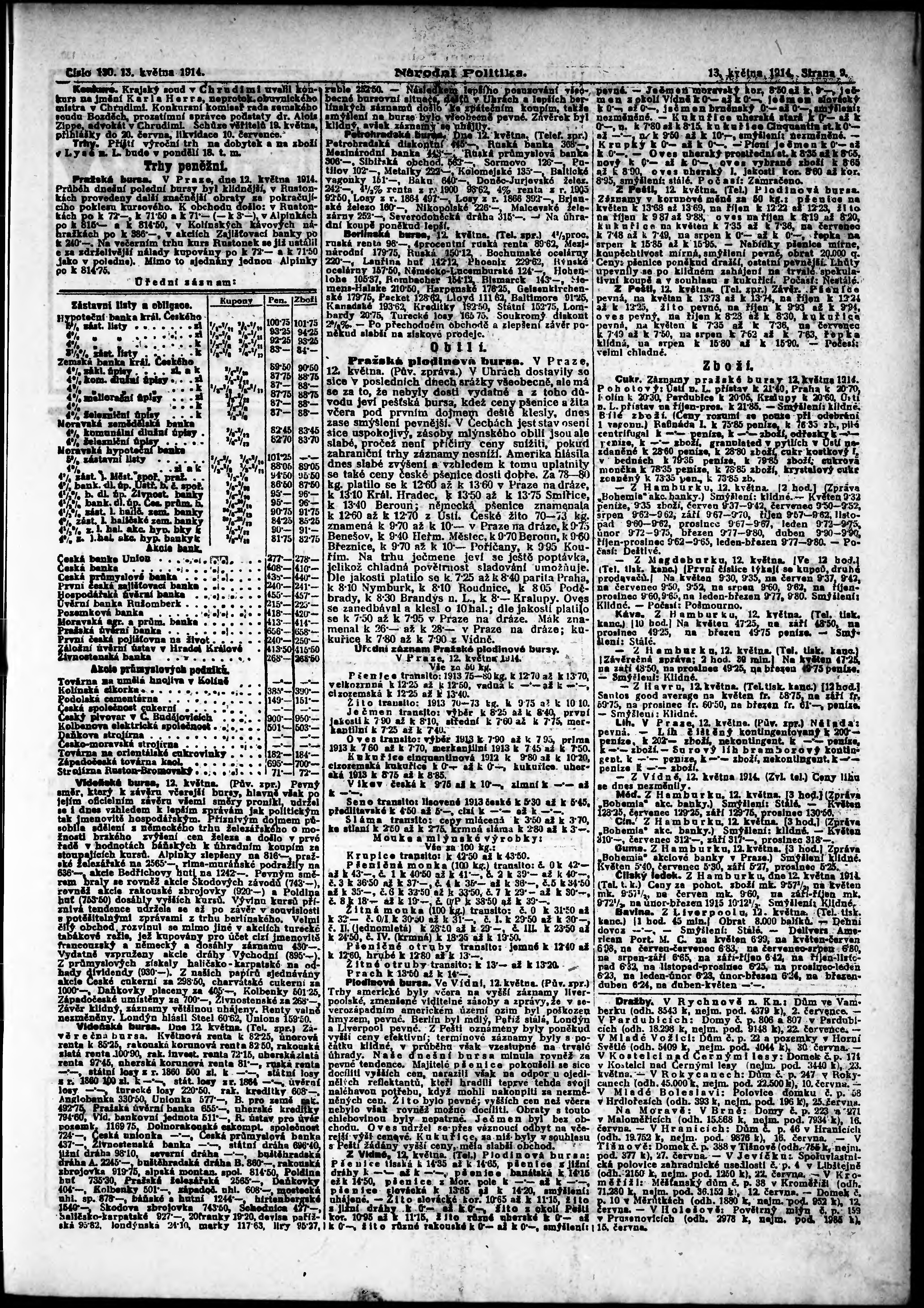 * Datum vydání výtisku: 13.5.1914 Číslo výtisku: 130 Poznámky k výtisku: ranní vydání;