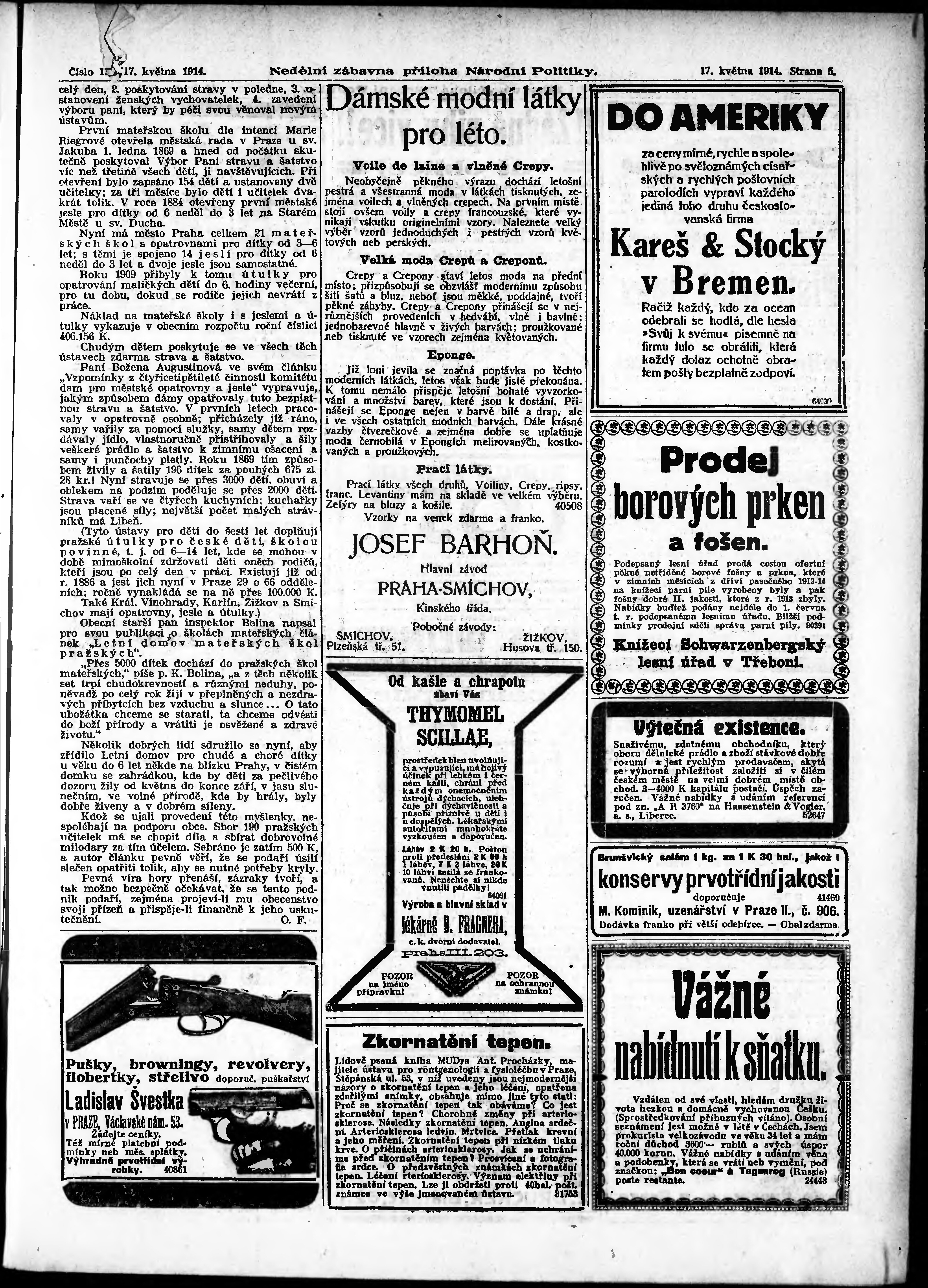 * Datum vydání výtisku: 17.5.1914 Číslo výtisku: 134 Typ výtisku: příloha