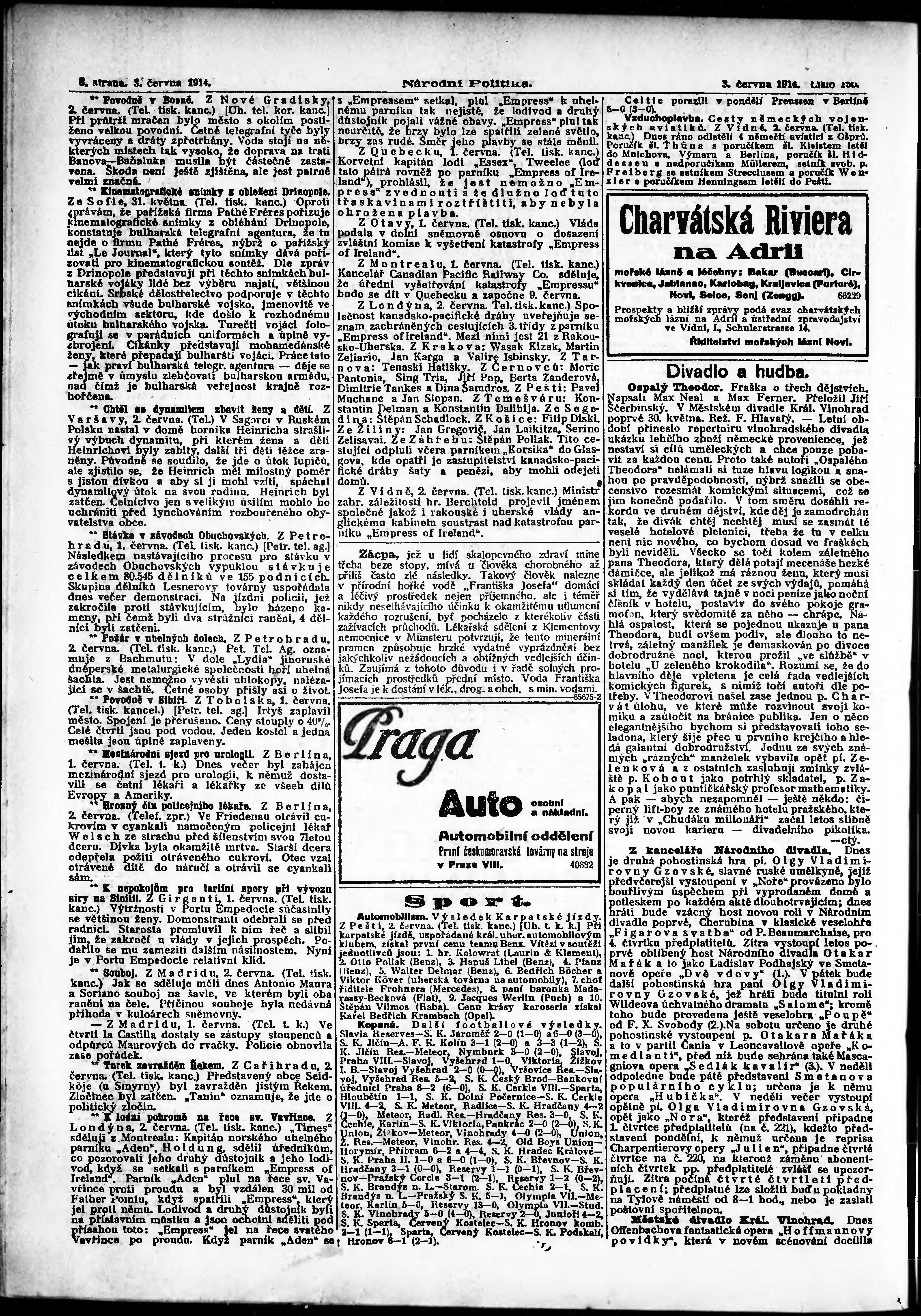 * Datum vydání výtisku: 3.6.1914 Číslo výtisku: 150 Poznámky k výtisku: ranní vydání;
