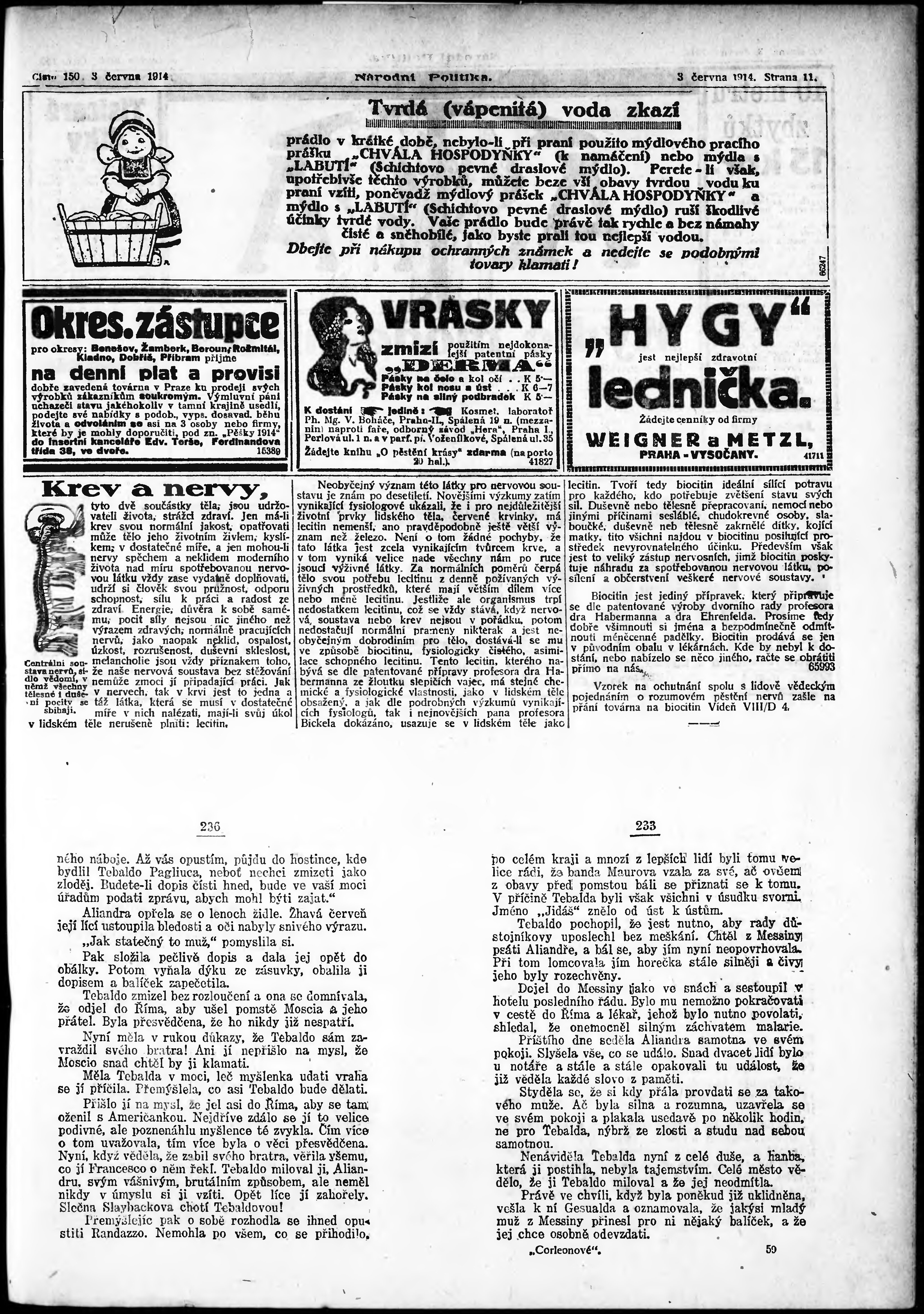 * Datum vydání výtisku: 3.6.1914 Číslo výtisku: 150 Poznámky k výtisku: ranní vydání;