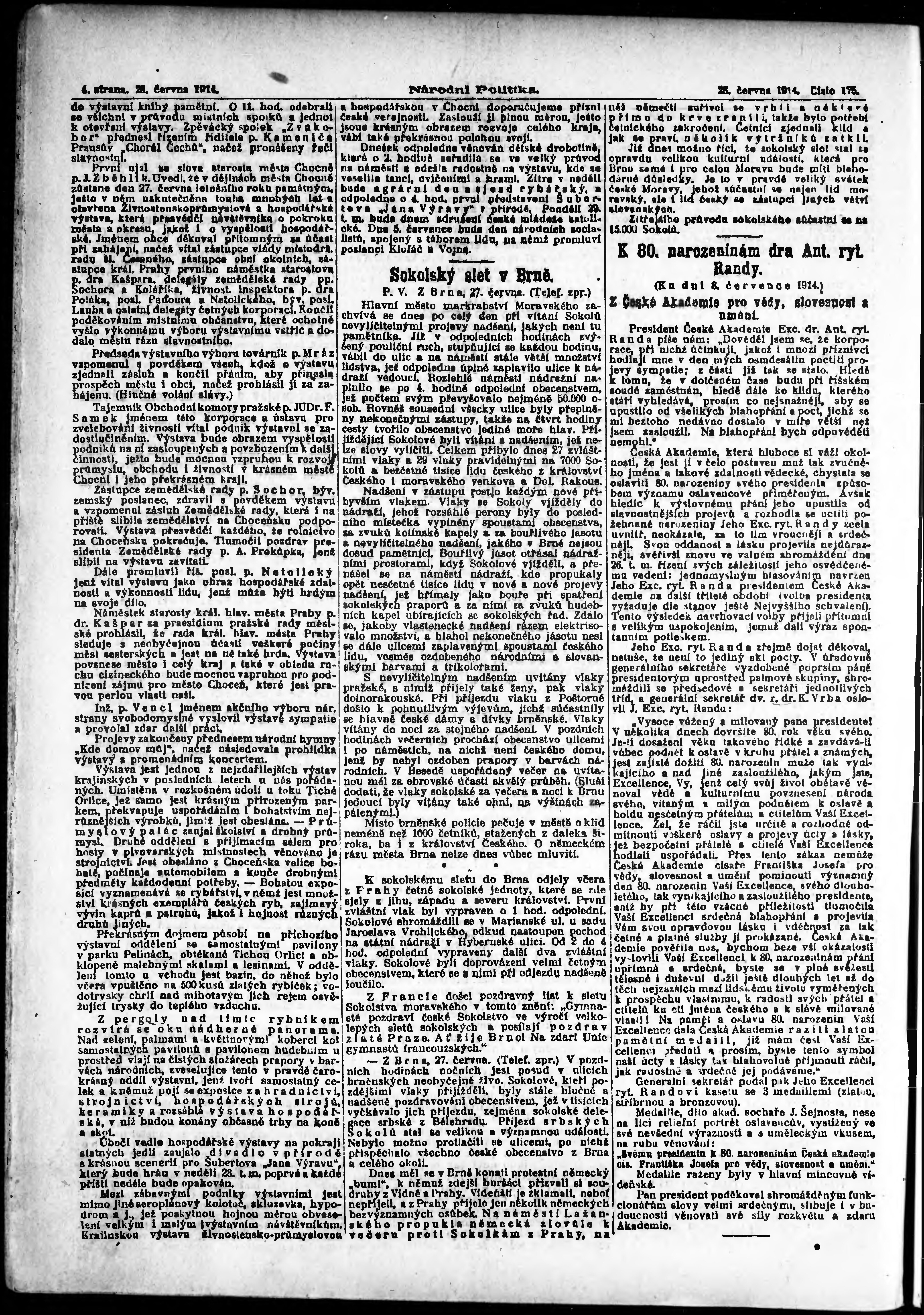 * Datum vydání výtisku: 28.6.1914 Číslo výtisku: 175 Poznámky k výtisku: ranní vydání;