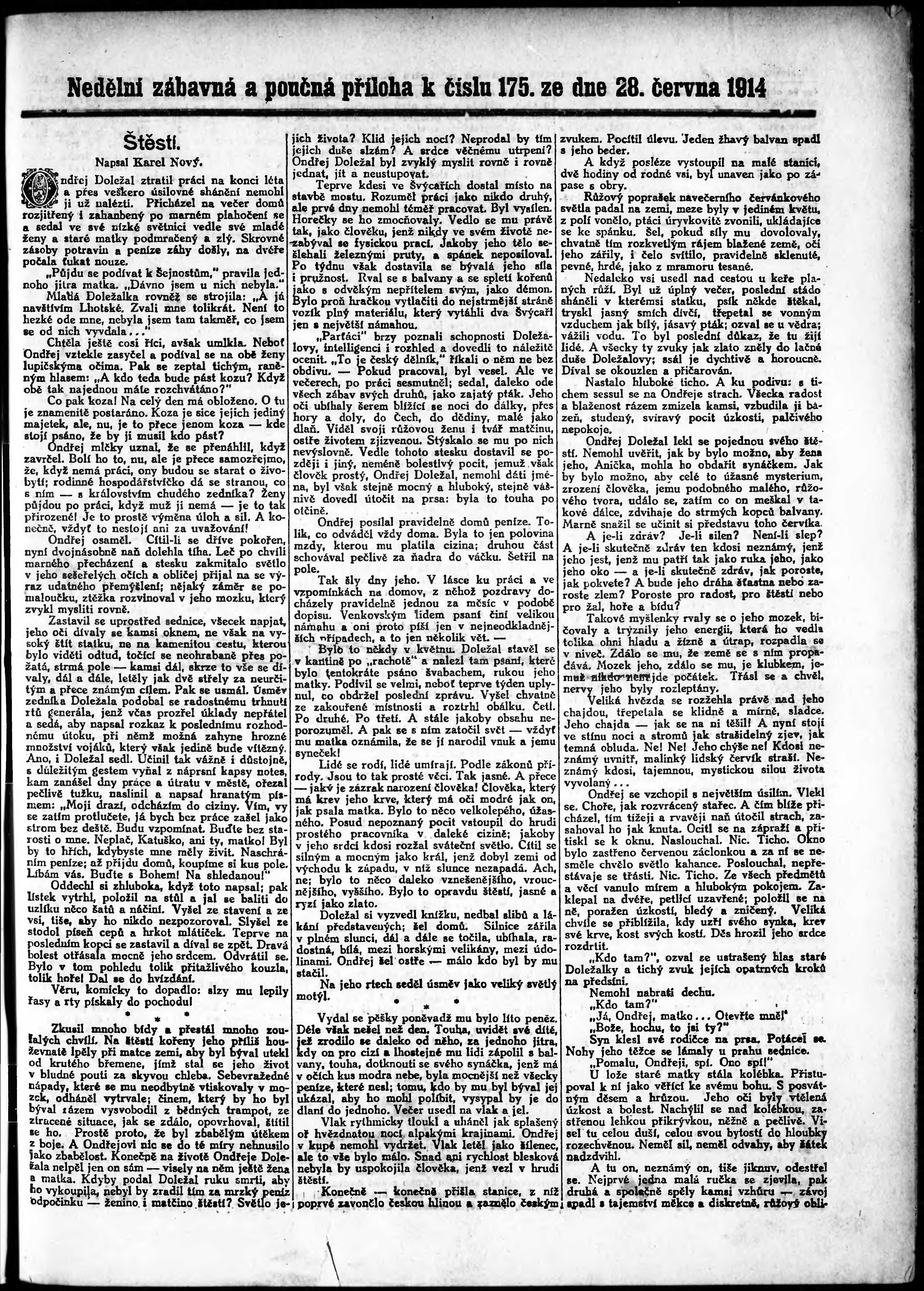 * Datum vydání výtisku: 28.6.1914 Číslo výtisku: 175 Typ výtisku: příloha