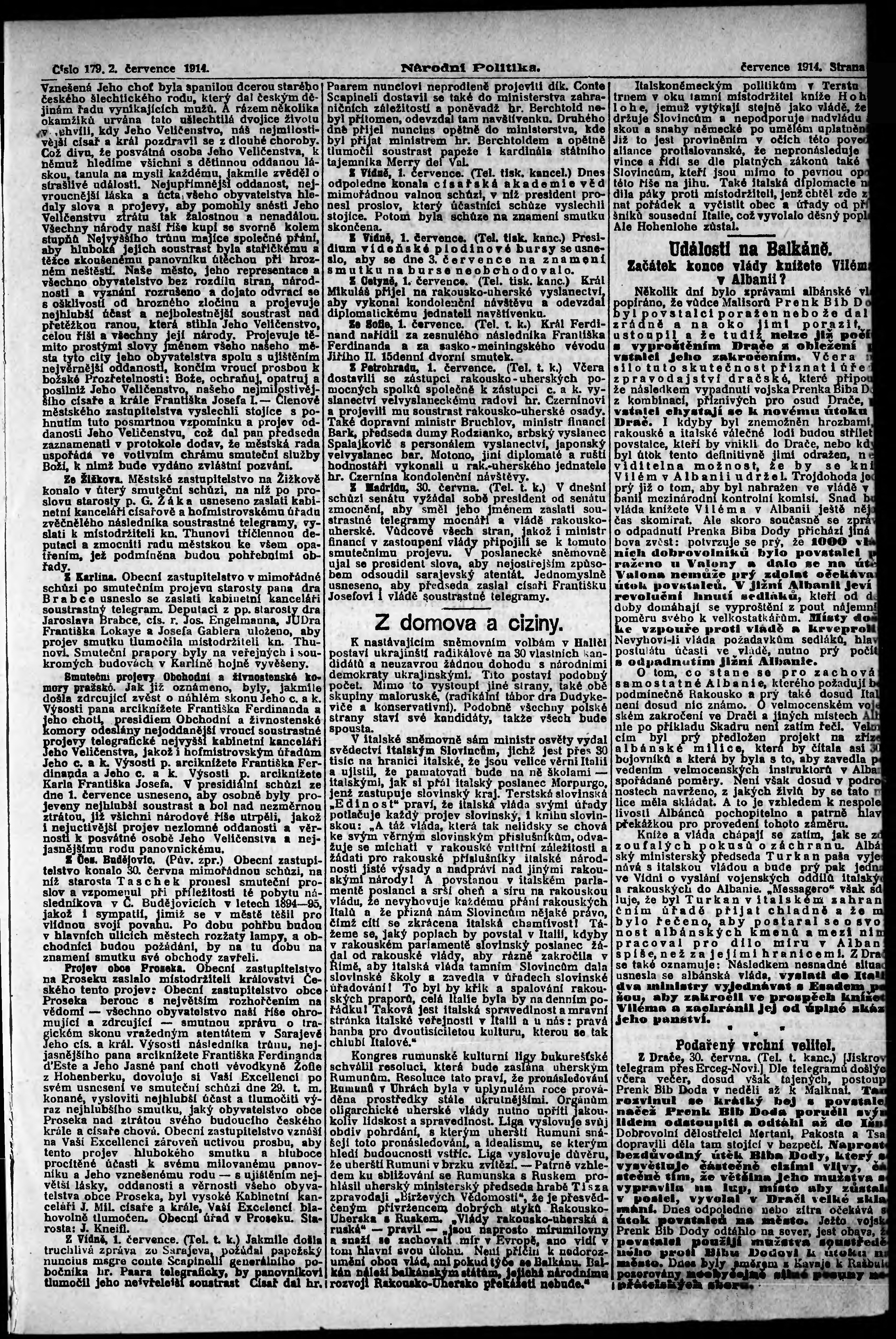 * Datum vydání výtisku: 2.7.1914 Číslo výtisku: 179 Poznámky k výtisku: ranní vydání;