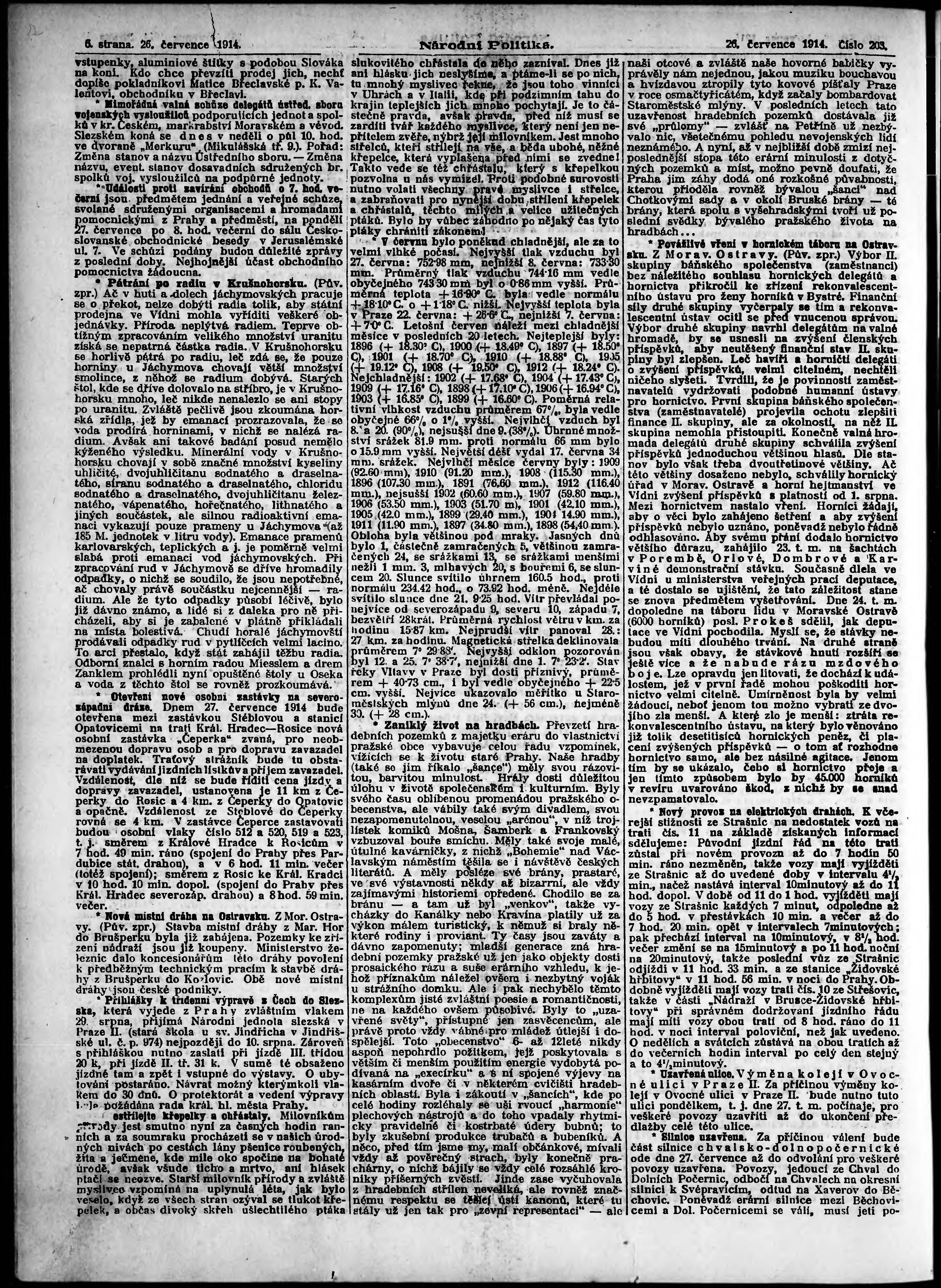* Datum vydání výtisku: 26.7.1914 Číslo výtisku: 203 Poznámky k výtisku: ranní vydání;