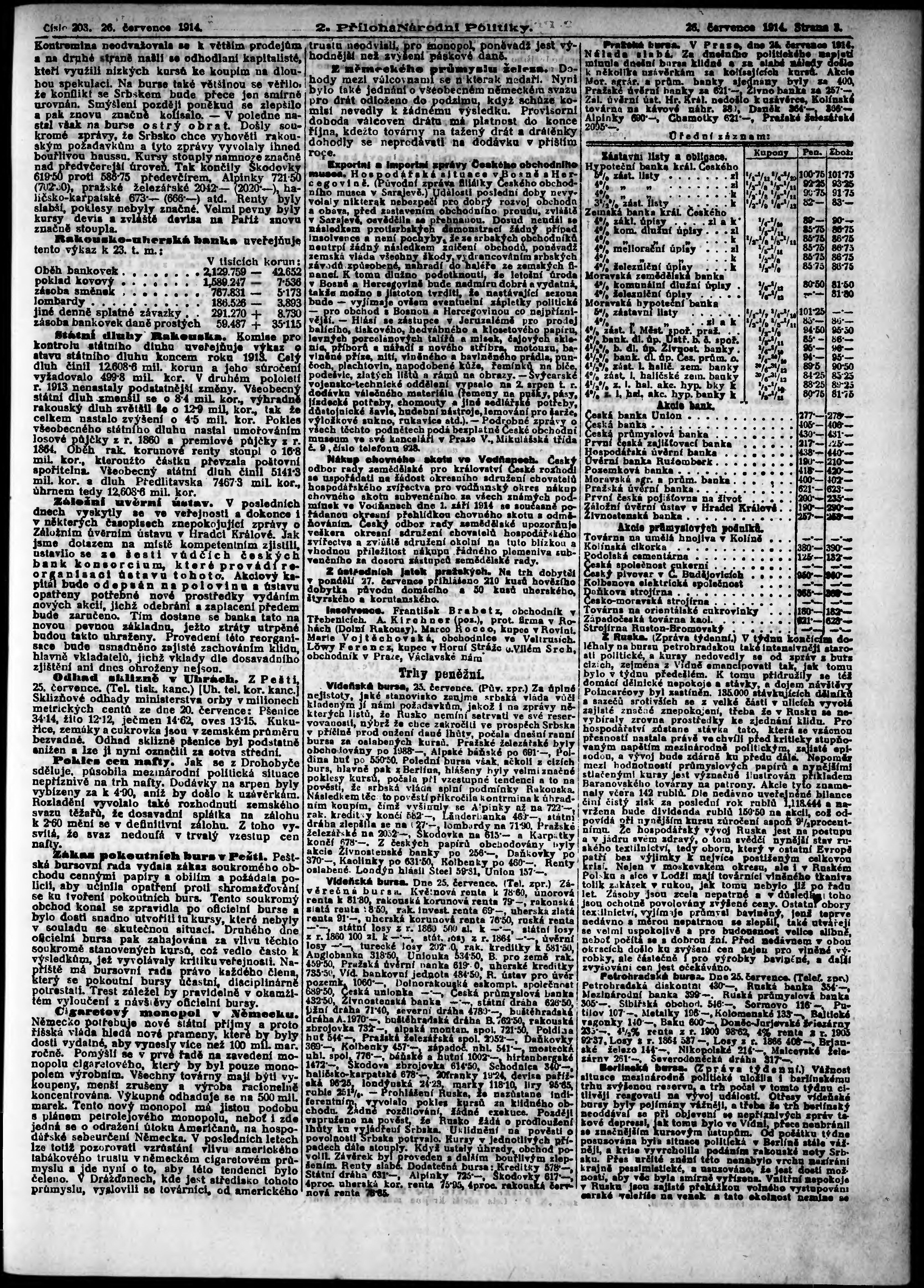 * Datum vydání výtisku: 26.7.1914 Číslo výtisku: 203 Typ výtisku: příloha Poznámky k výtisku: 2. příloha;