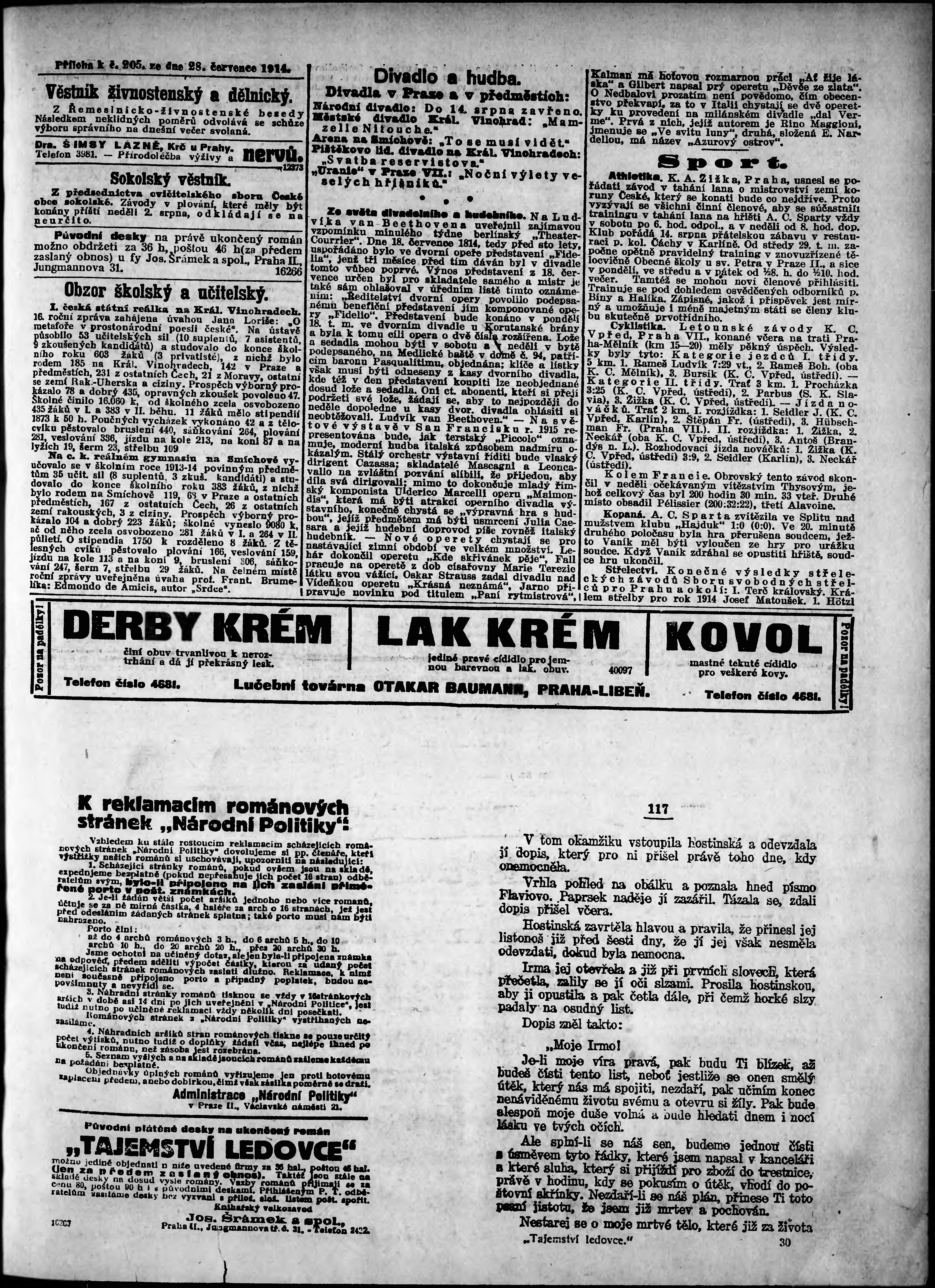 * Datum vydání výtisku: 28.7.1914 Číslo výtisku: 205 Typ výtisku: příloha