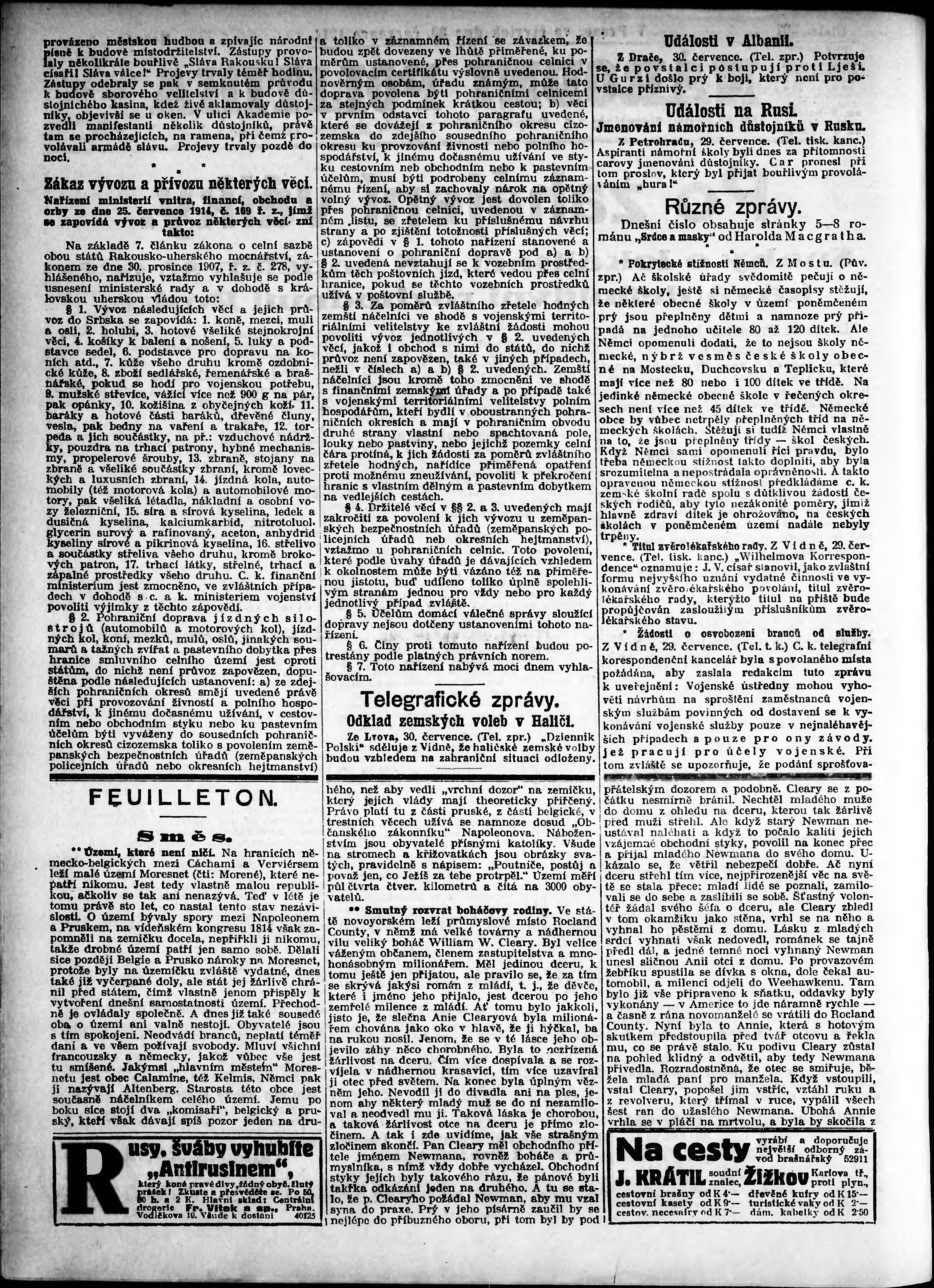 * Datum vydání výtisku: 30.7.1914 Číslo výtisku: 207 Poznámky k výtisku: odpolední vydání;