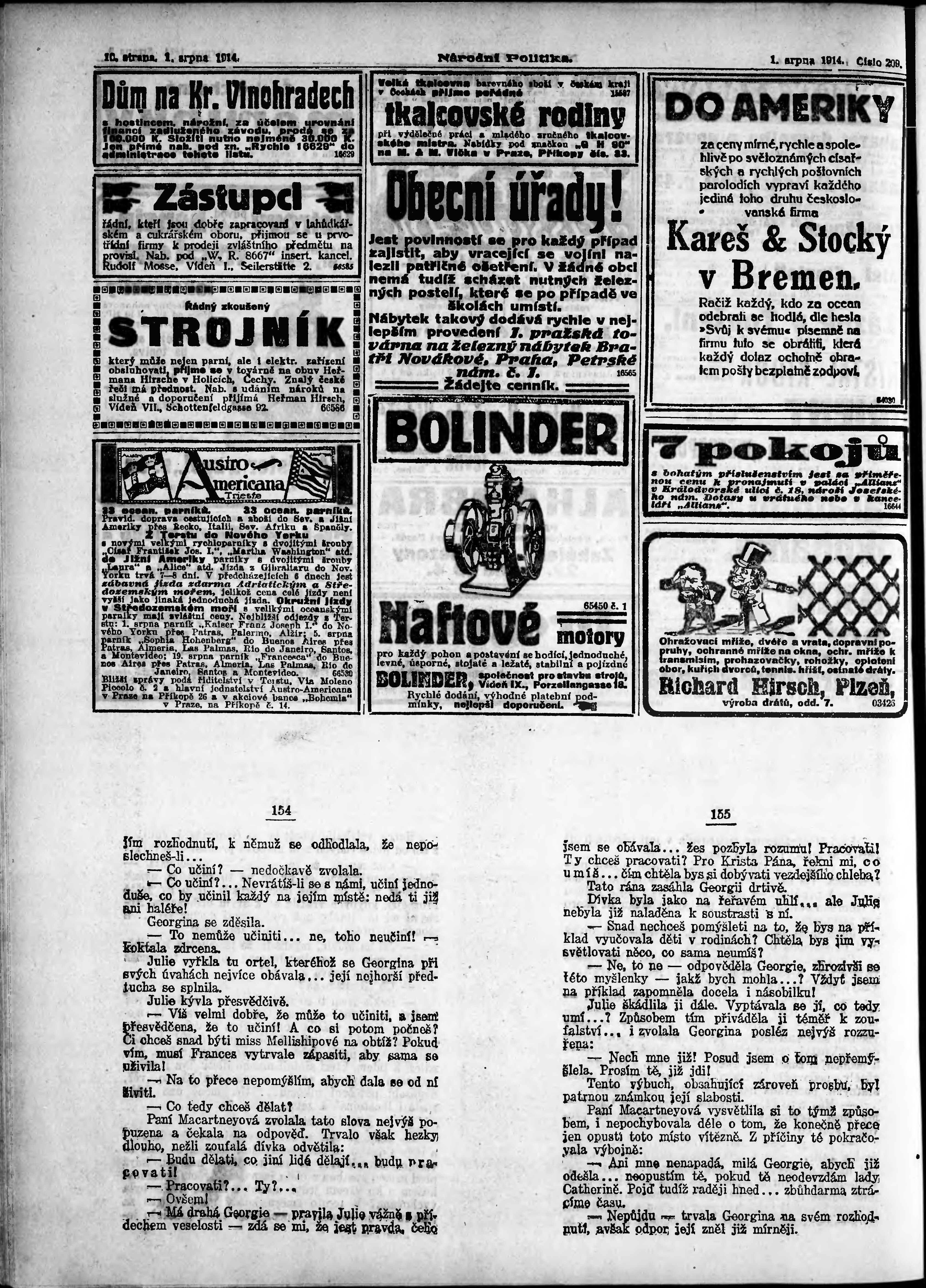 * Datum vydání výtisku: 1.8.1914 Číslo výtisku: 209 Poznámky k výtisku: ranní vydání;