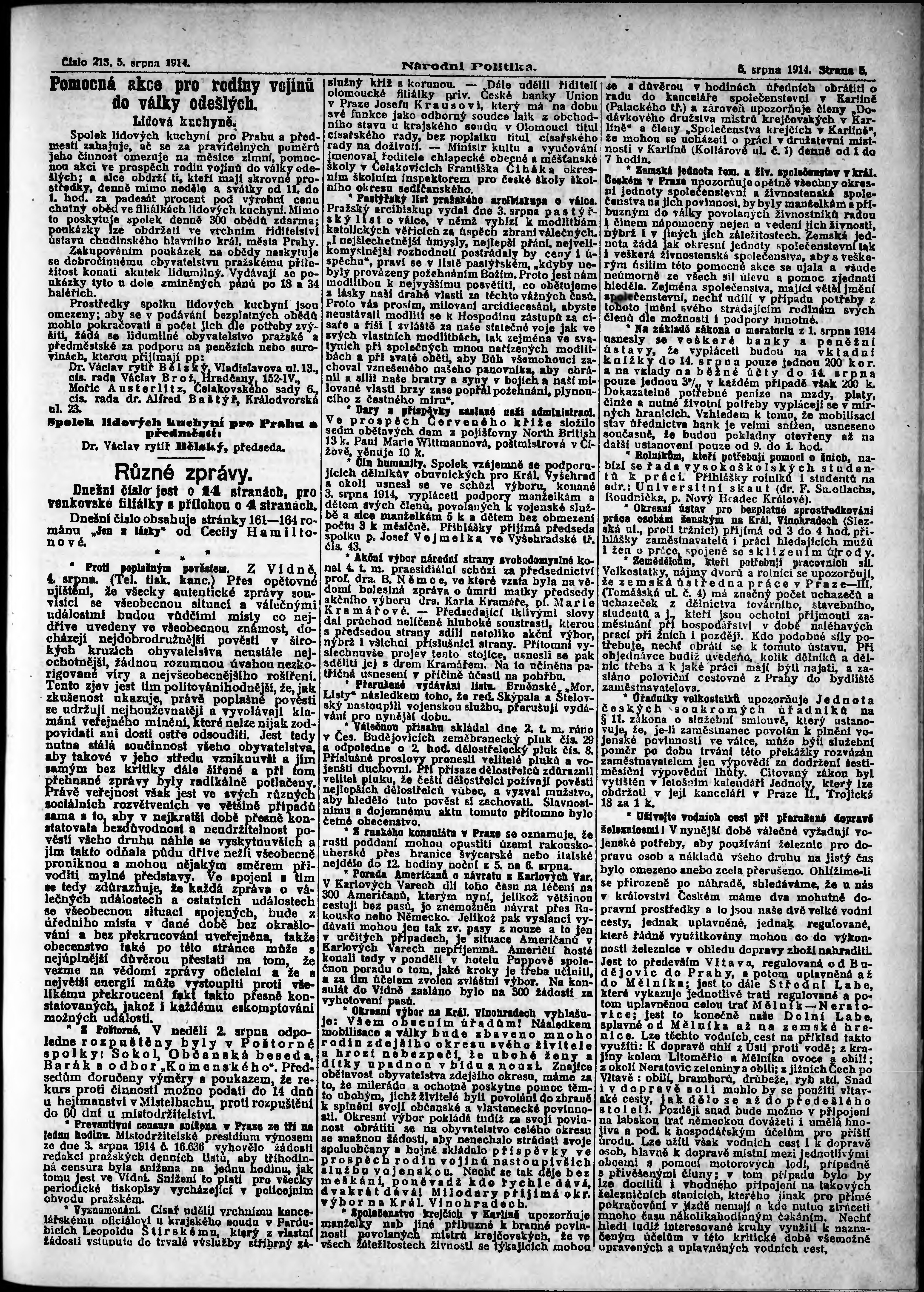 * Datum vydání výtisku: 5.8.1914 Číslo výtisku: 213 Poznámky k výtisku: ranní vydání;