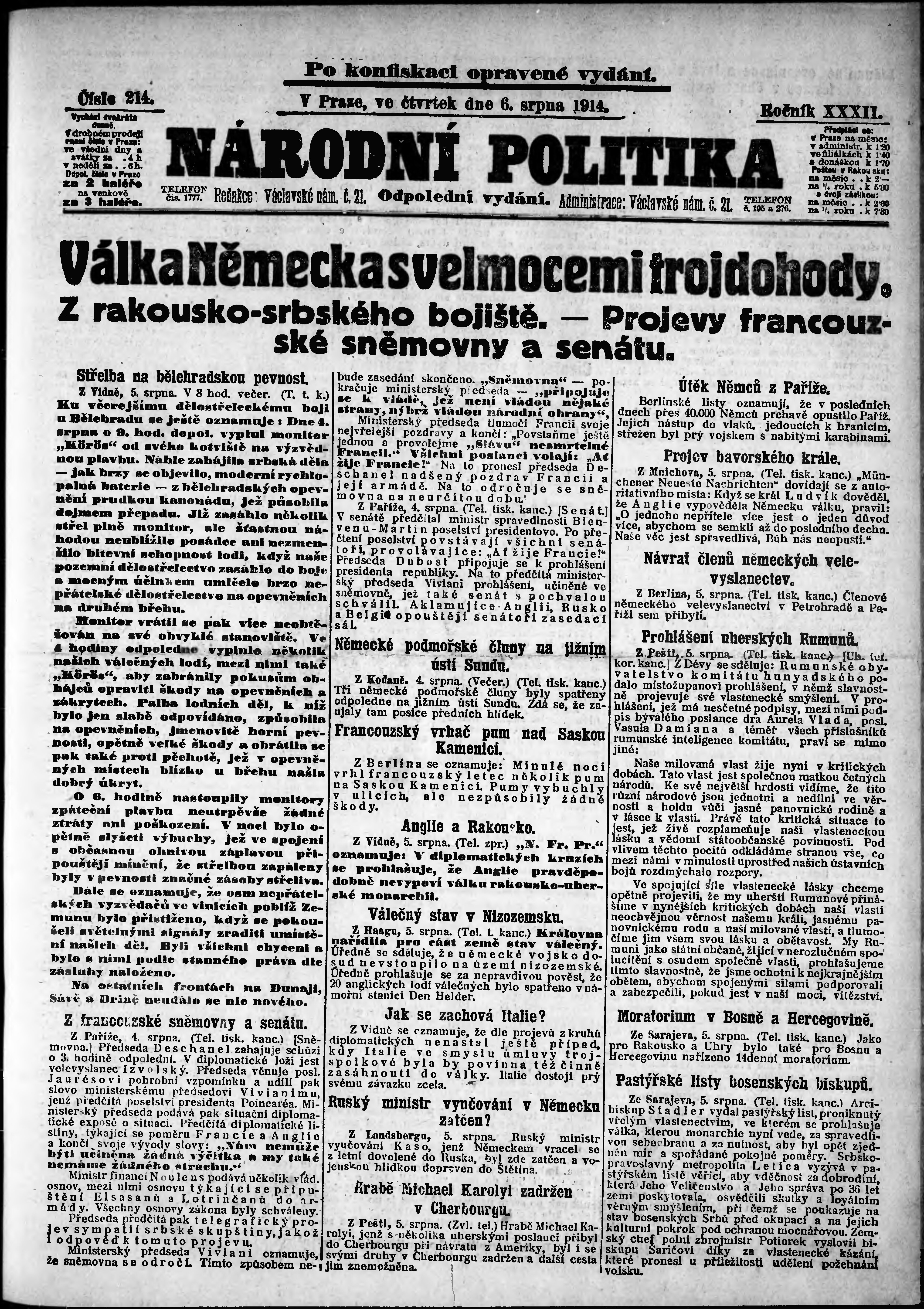 Datum vydání výtisku: 6.8.1914