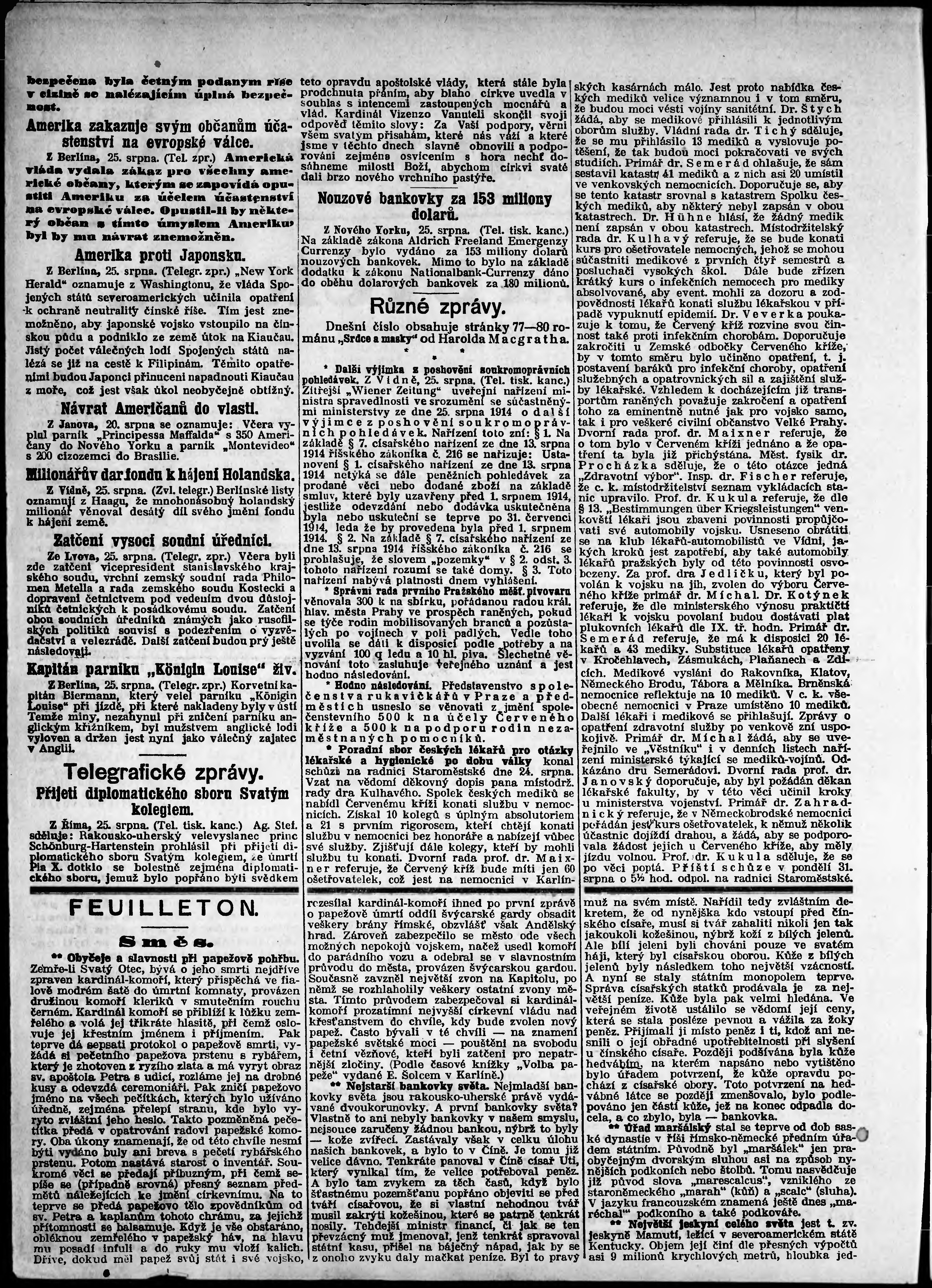 * Datum vydání výtisku: 26.8.1914 Číslo výtisku: 234 Poznámky k výtisku: odpolední vydání;