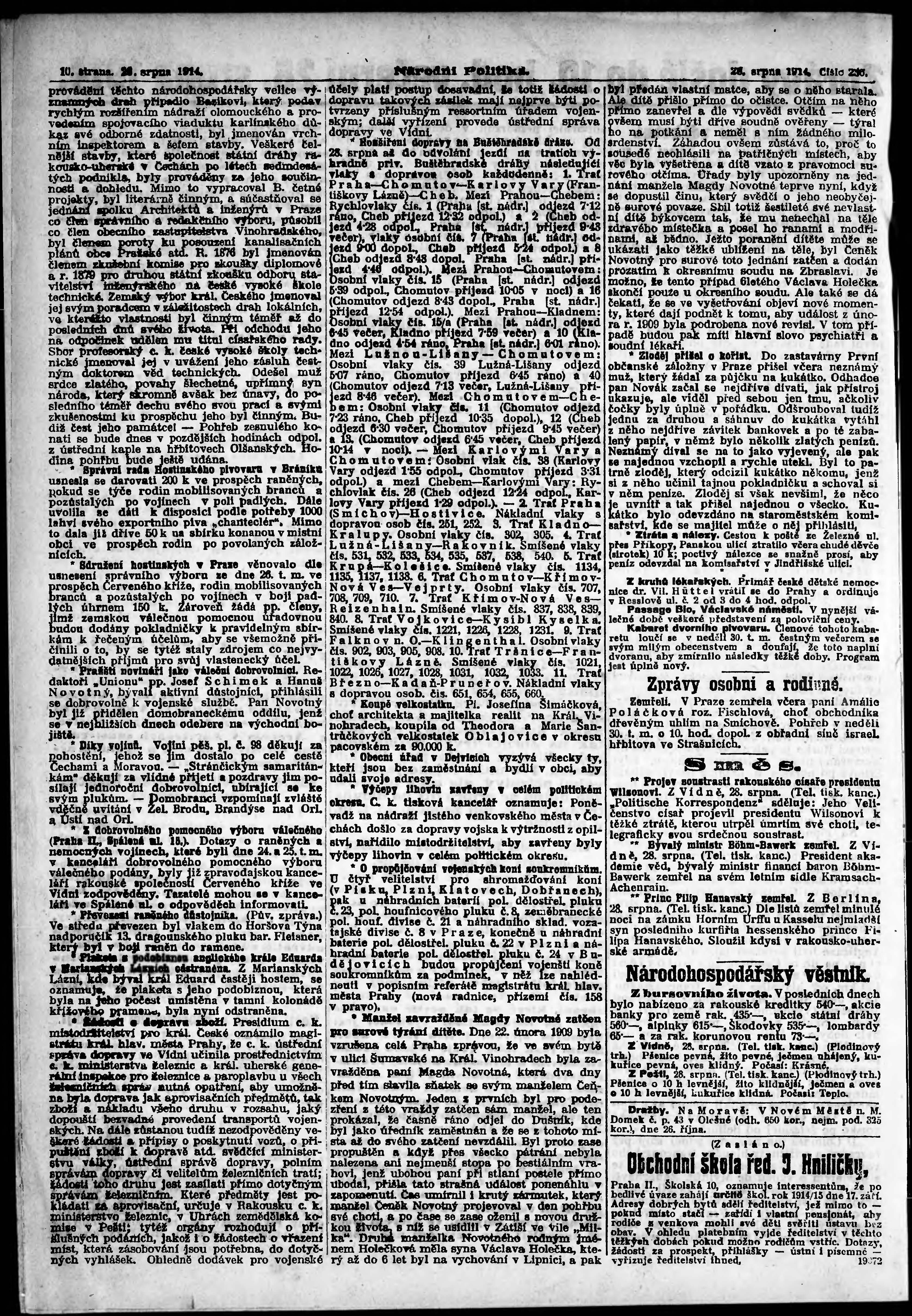 ranní vydání; vydání pro Prahu;