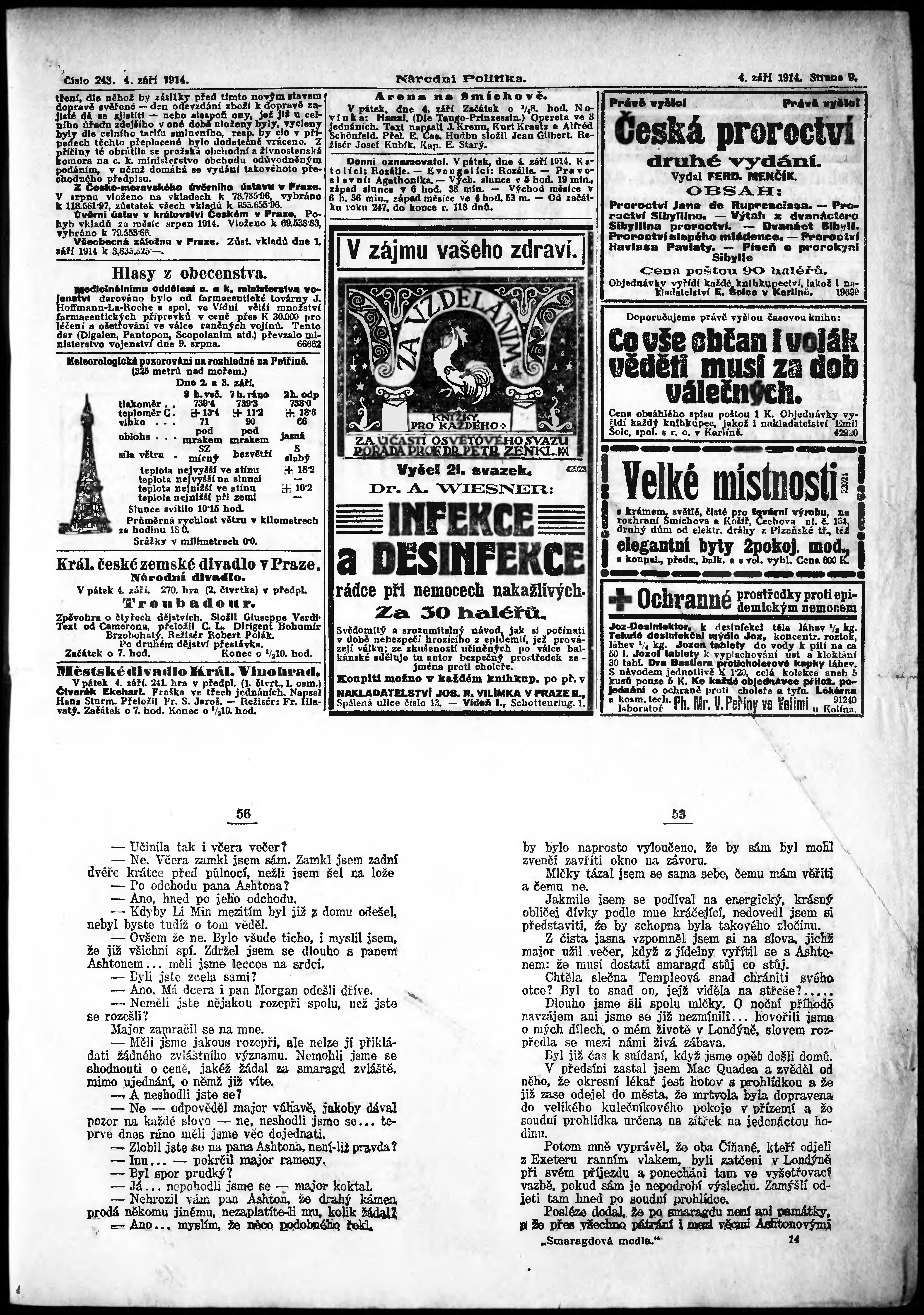 * Datum vydání výtisku: 4.9.1914 Číslo výtisku: 243 Poznámky k výtisku: ranní vydání;