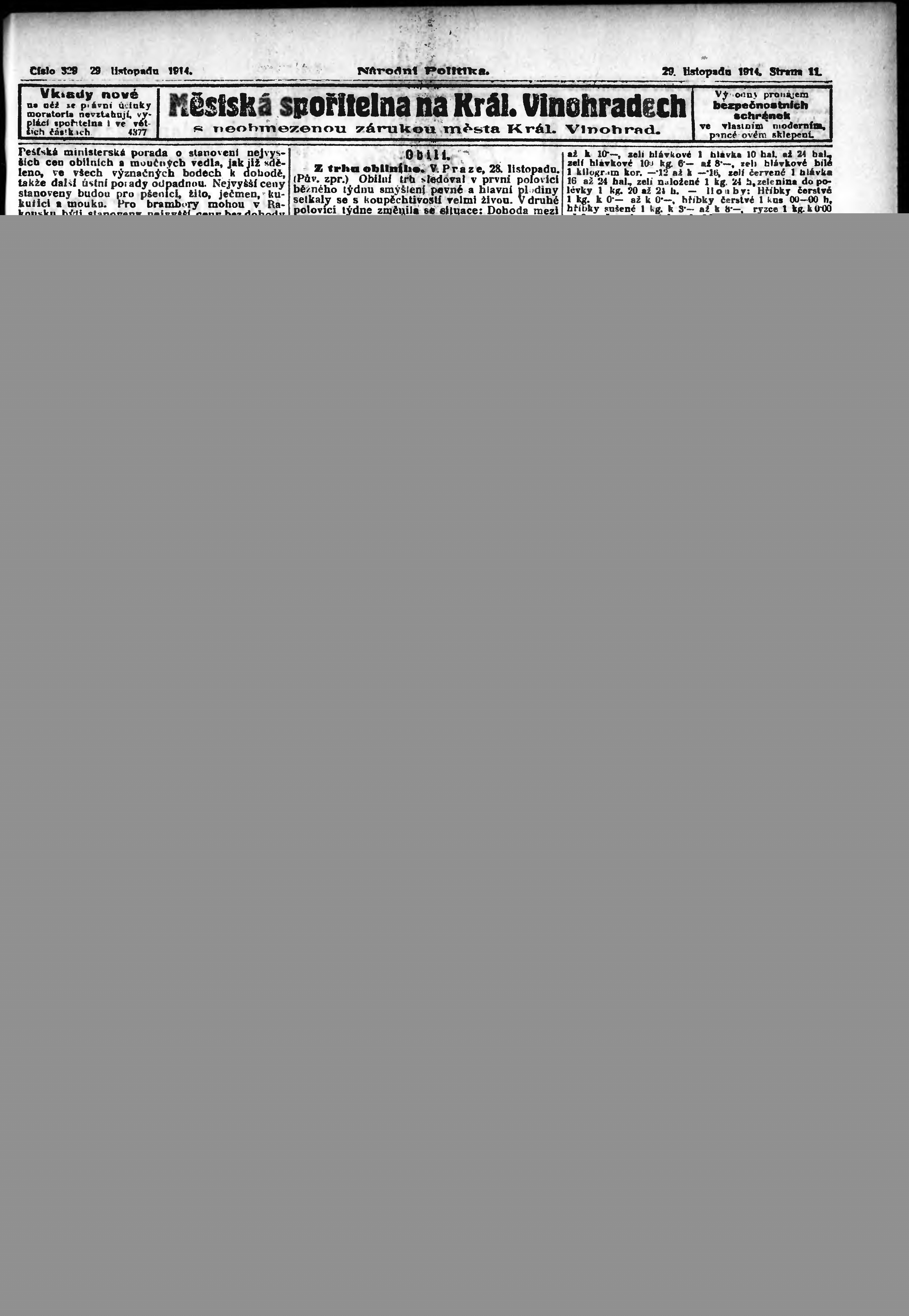 * Datum vydání výtisku: 29.11.1914 Číslo výtisku: 329 Poznámky k výtisku: ranní vydání; vydání pro Prahu;
