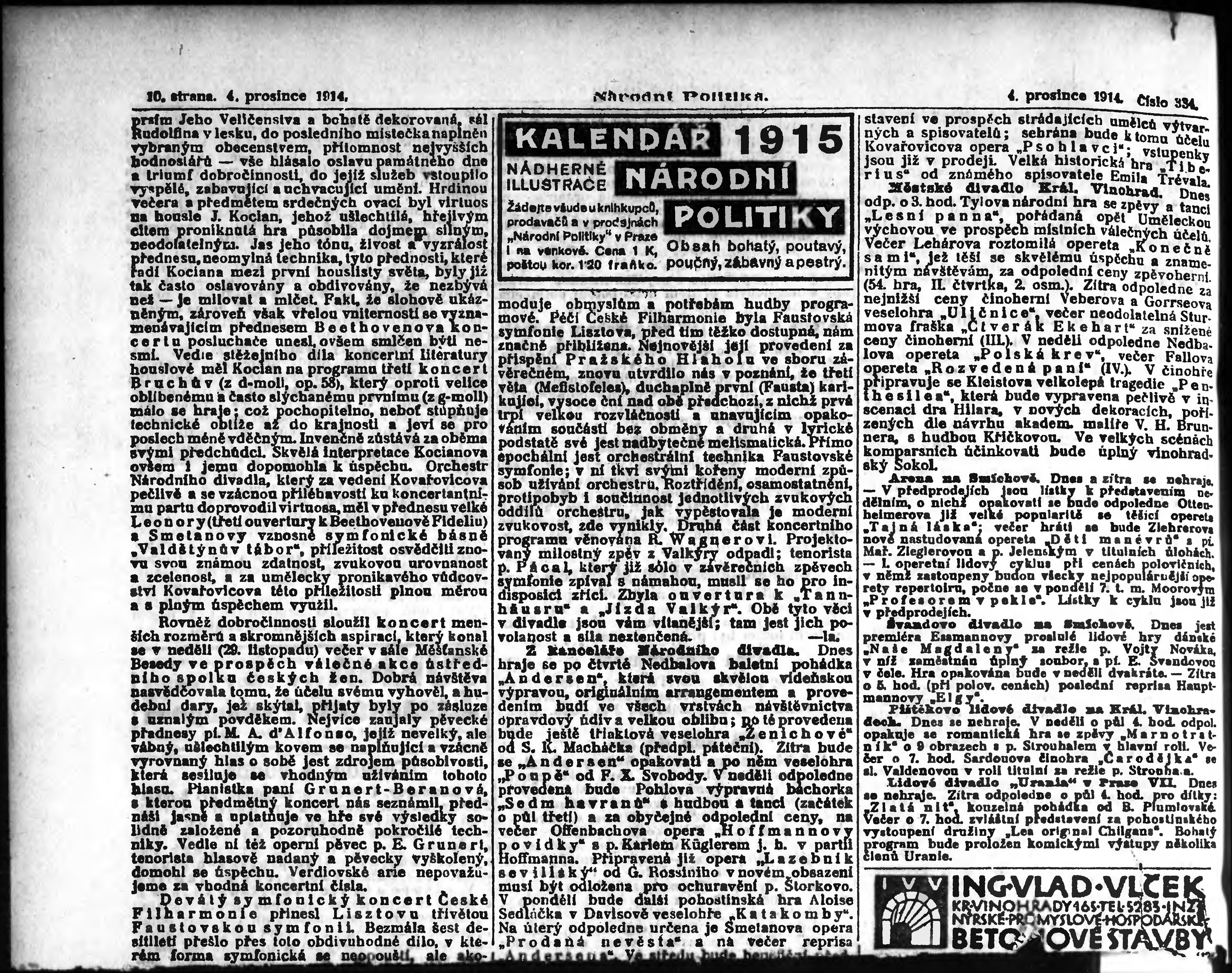 * Datum vydání výtisku: 4.12.1914 Číslo výtisku: 334 Poznámky k výtisku: ranní vydání; vydání pro Prahu;