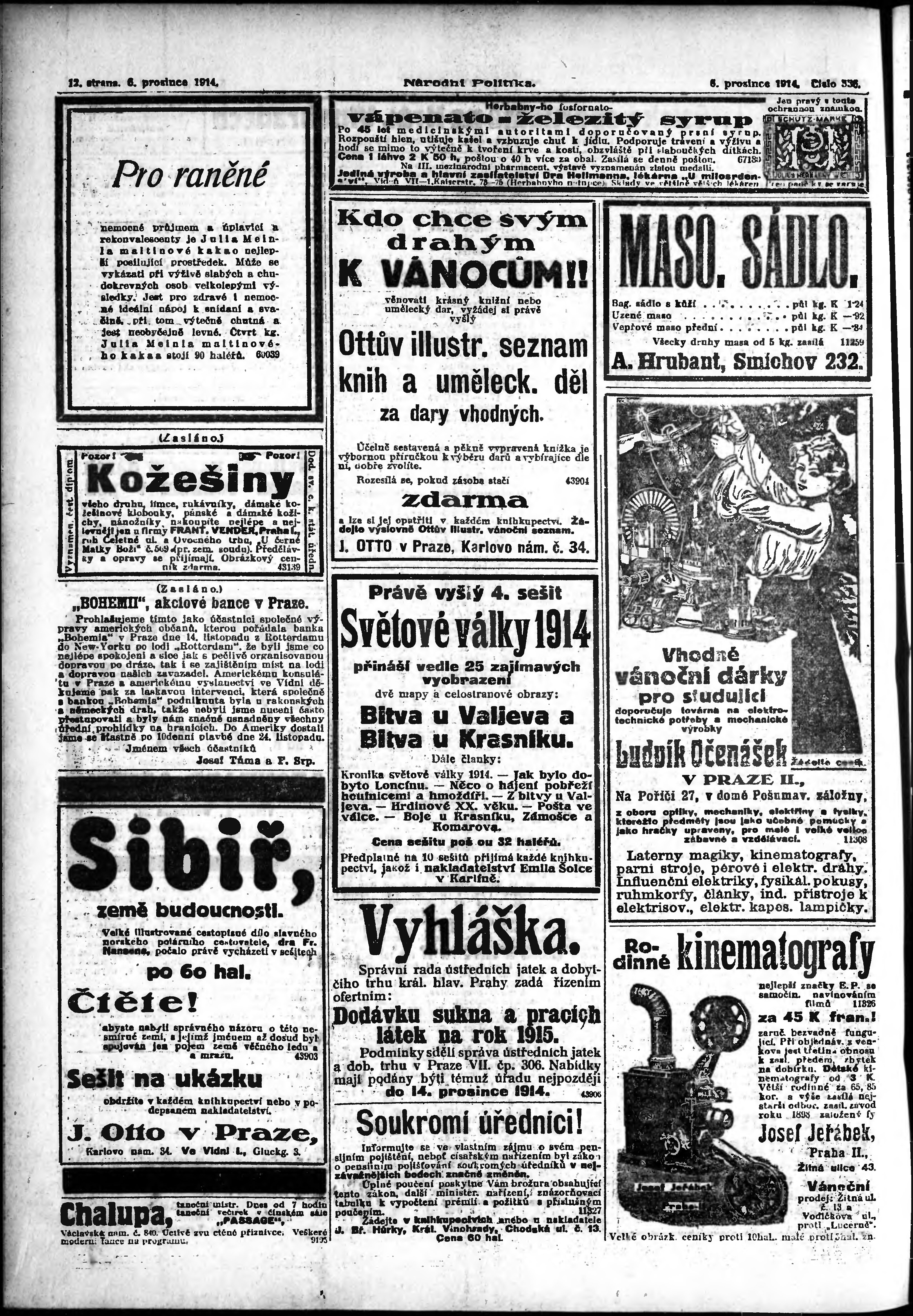 * Datum vydání výtisku: 6.12.1914 Číslo výtisku: 336 Poznámky k výtisku: ranní vydání; vydání pro Prahu;