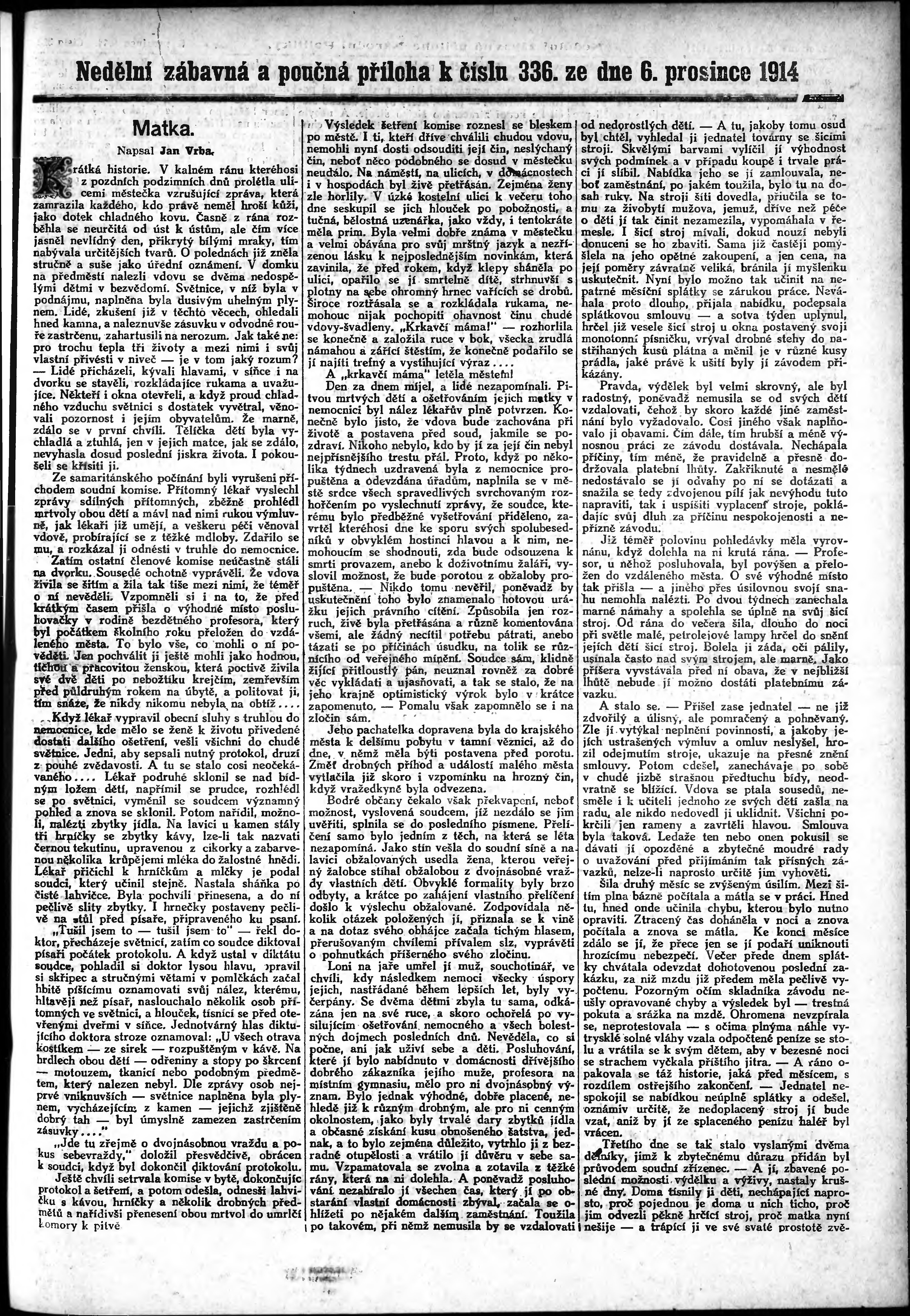 * Datum vydání výtisku: 6.12.1914 Číslo výtisku: 336 Typ výtisku: příloha