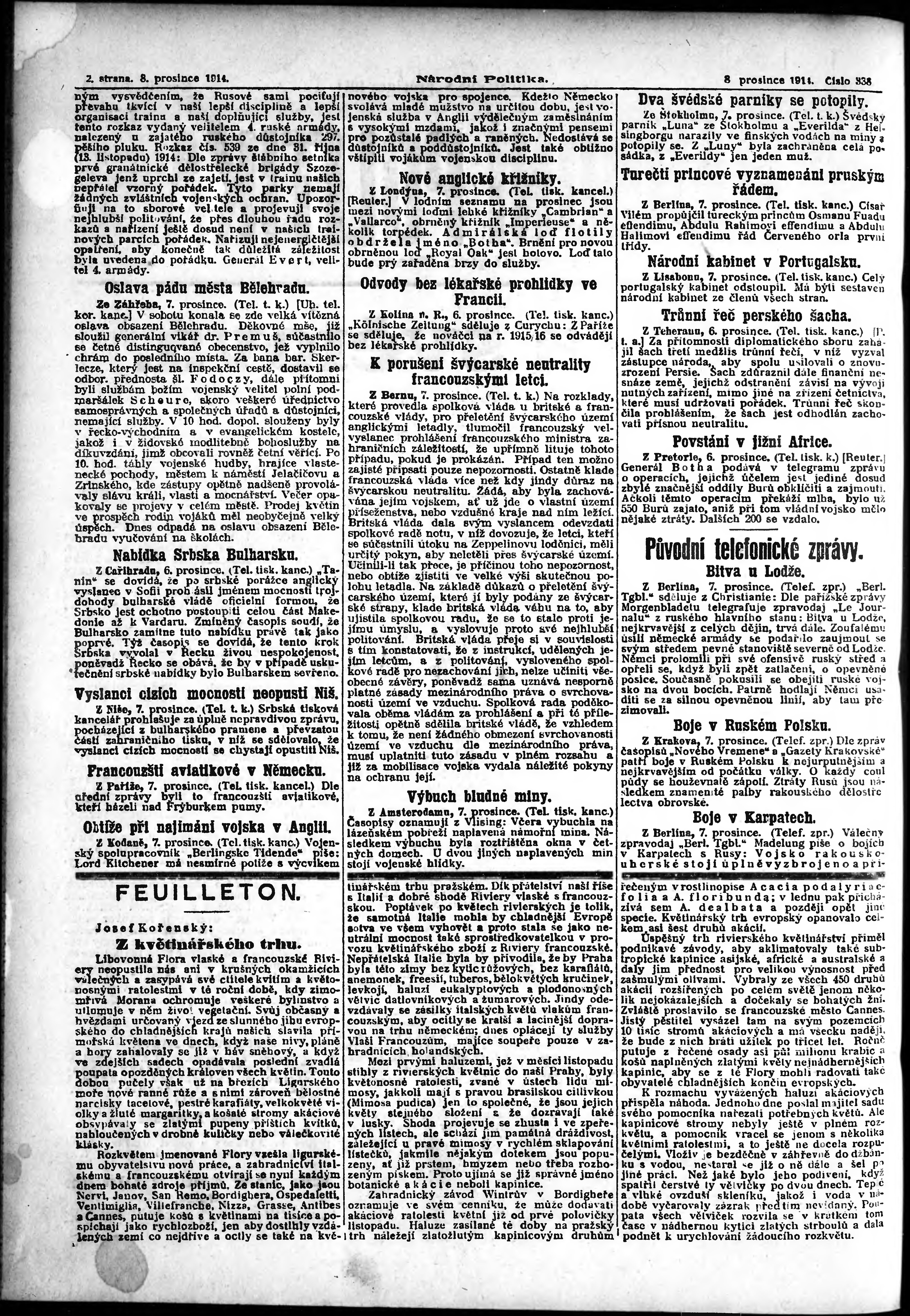 * Datum vydání výtisku: 8.12.1914 Číslo výtisku: 338 Poznámky k výtisku: ranní vydání; vydání pro Prahu;