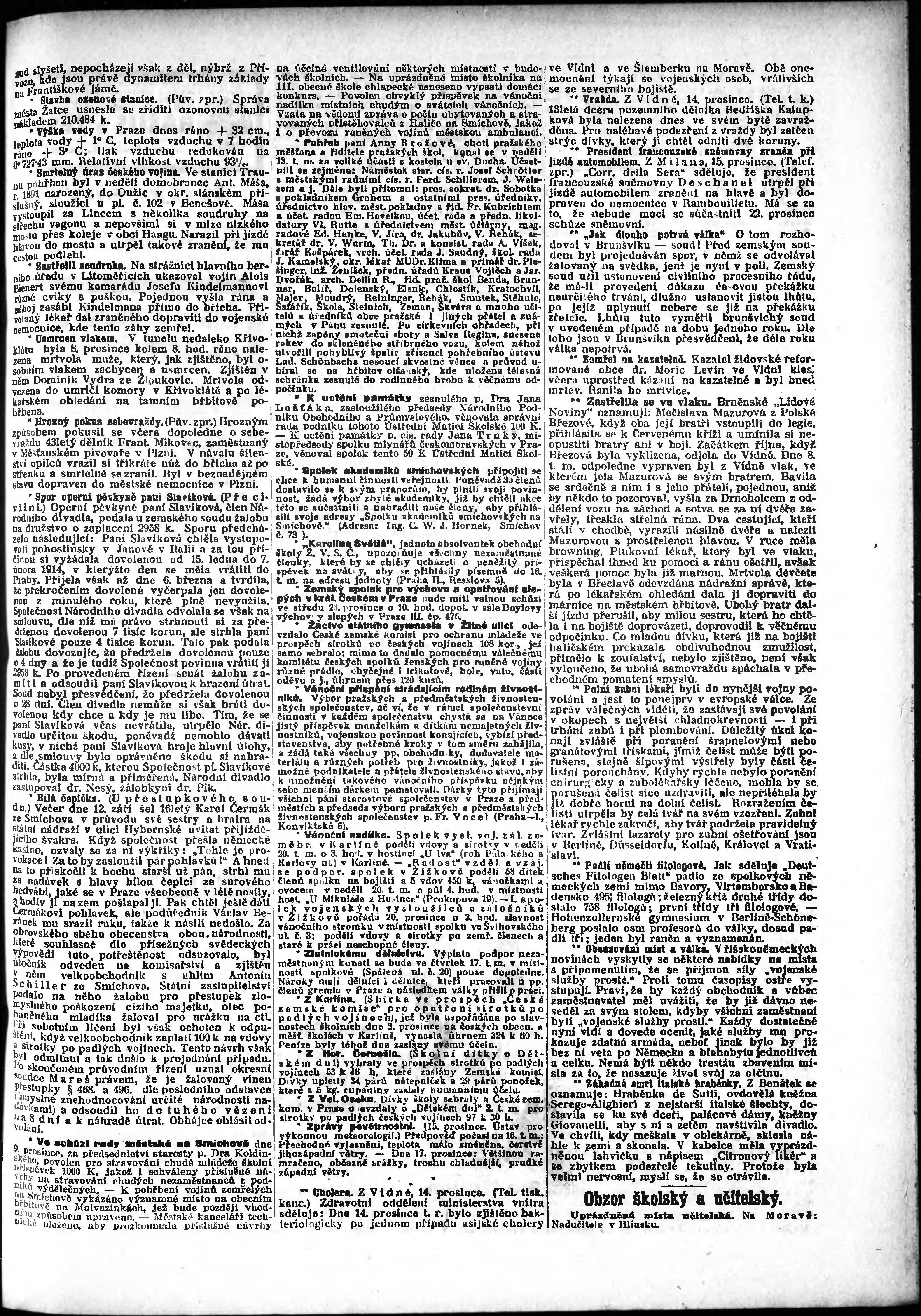 * Datum vydání výtisku: 15.12.1914 Číslo výtisku: 345 Poznámky k výtisku: odpolední vydání;