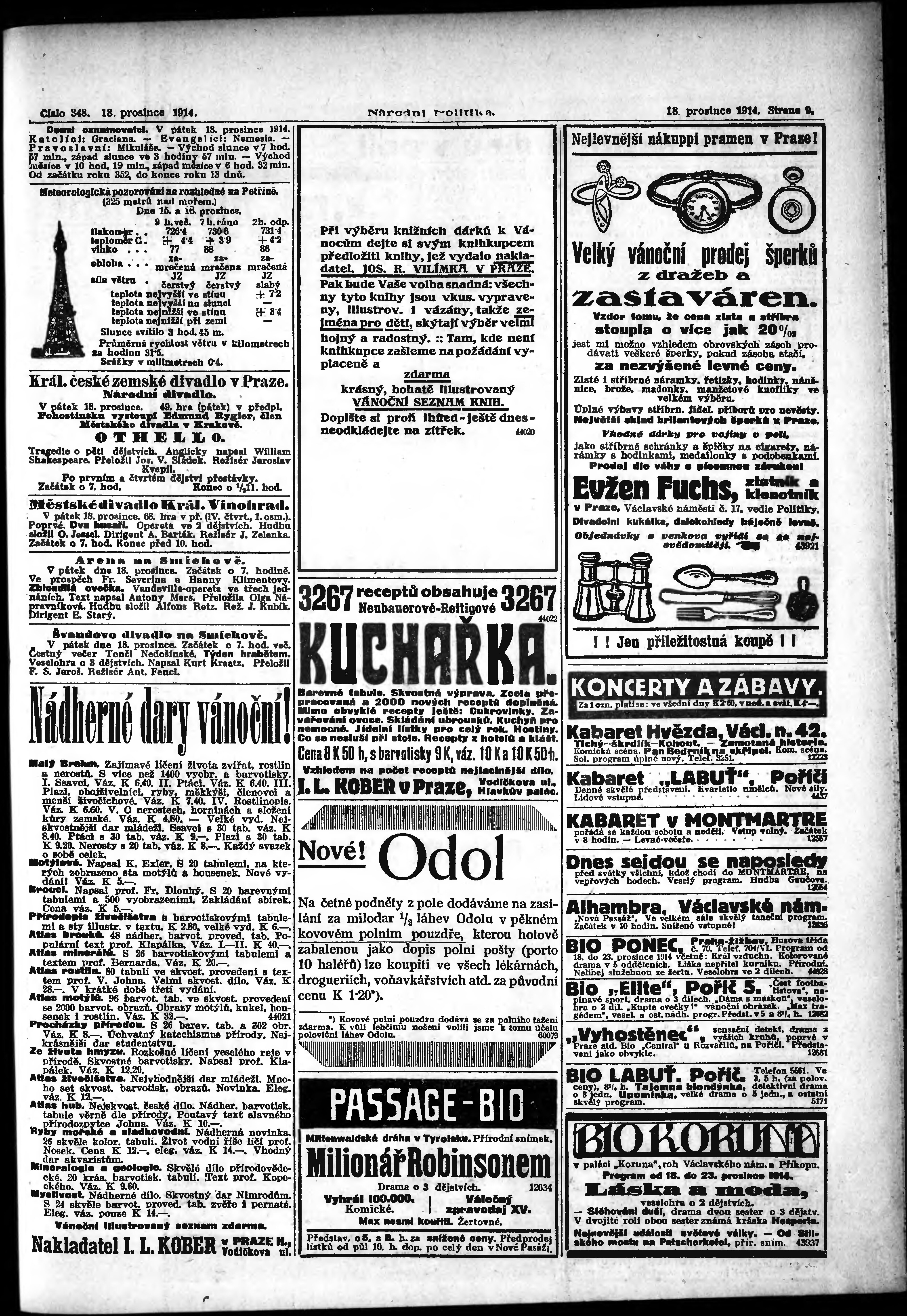 * Datum vydání výtisku: 18.12.1914 Číslo výtisku: 348 Poznámky k výtisku: ranní vydání; vydání pro Prahu;