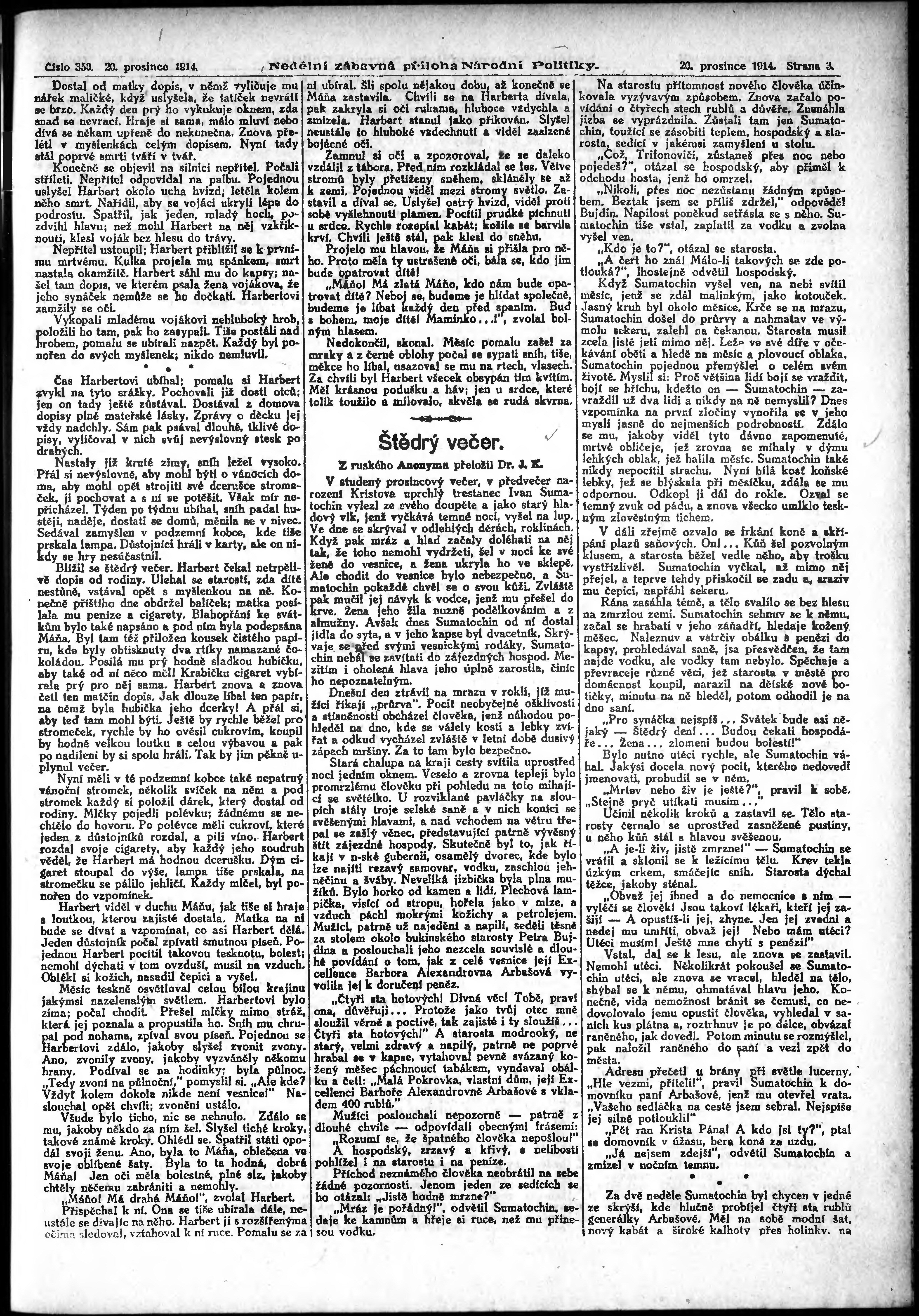 * Datum vydání výtisku: 20.12.1914 Číslo výtisku: 350 Typ výtisku: příloha