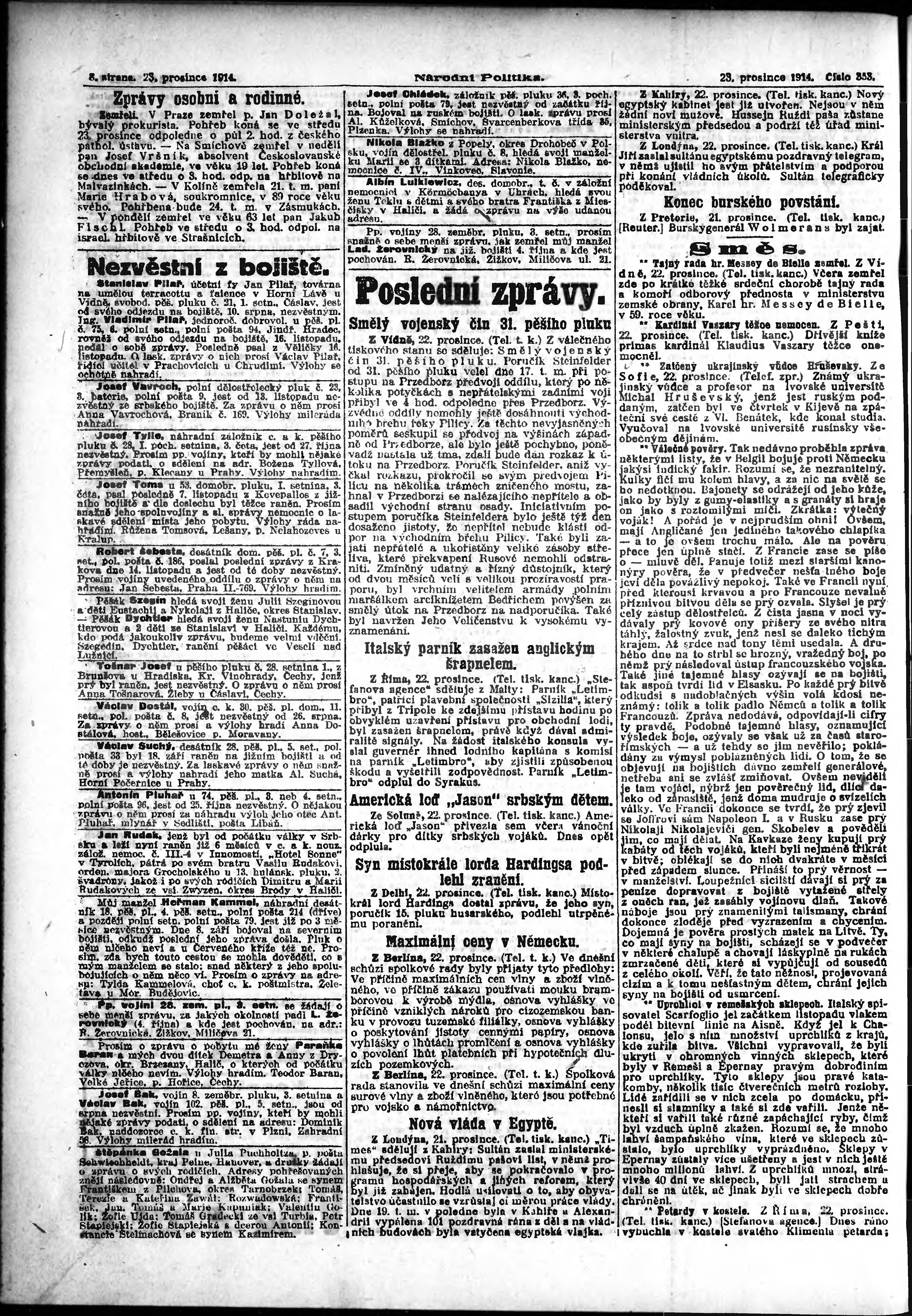 * Datum vydání výtisku: 23.12.1914 Číslo výtisku: 353 Poznámky k výtisku: ranní vydání; vydání pro Prahu;