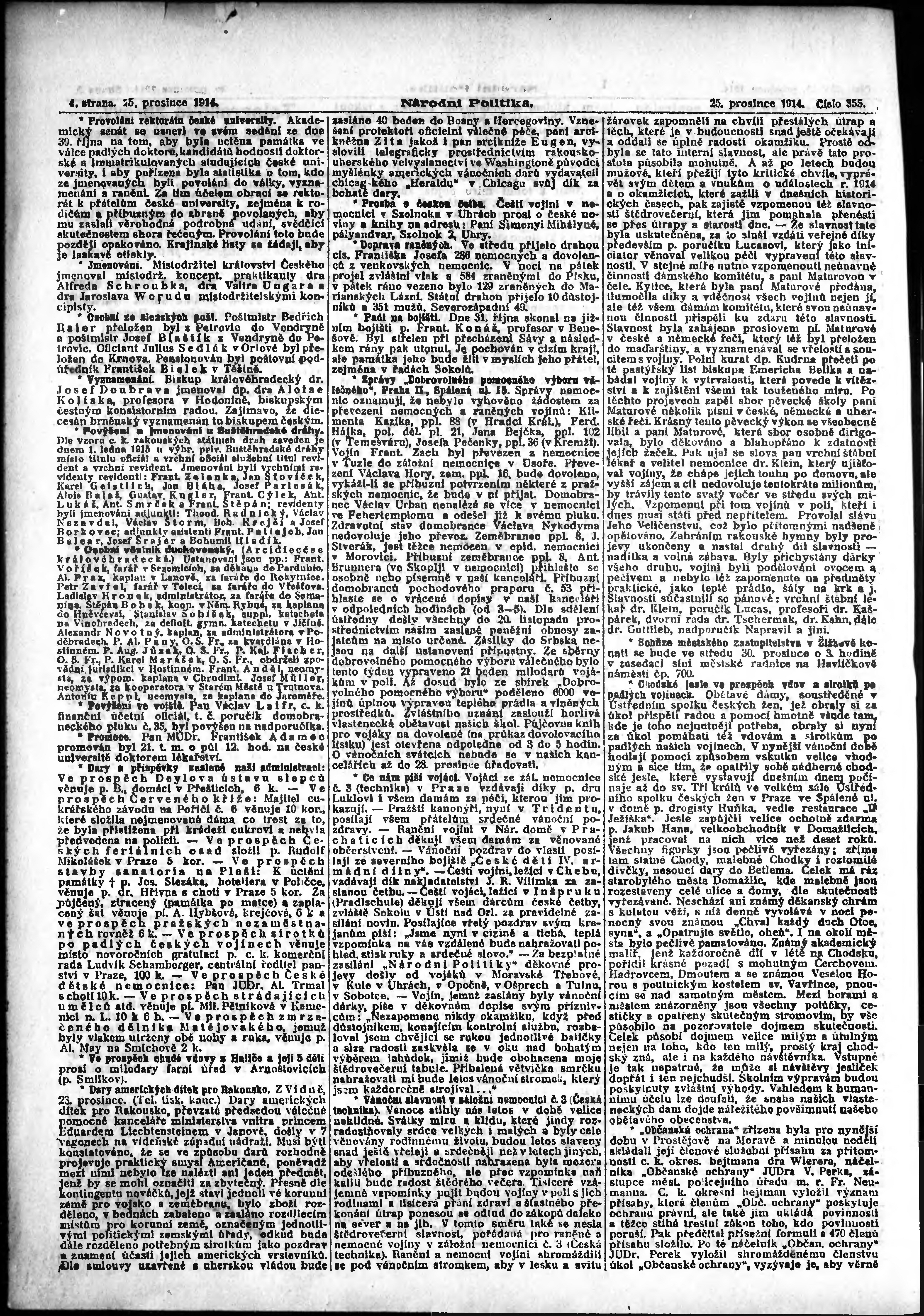 * Datum vydání výtisku: 25.12.1914 Číslo výtisku: 355