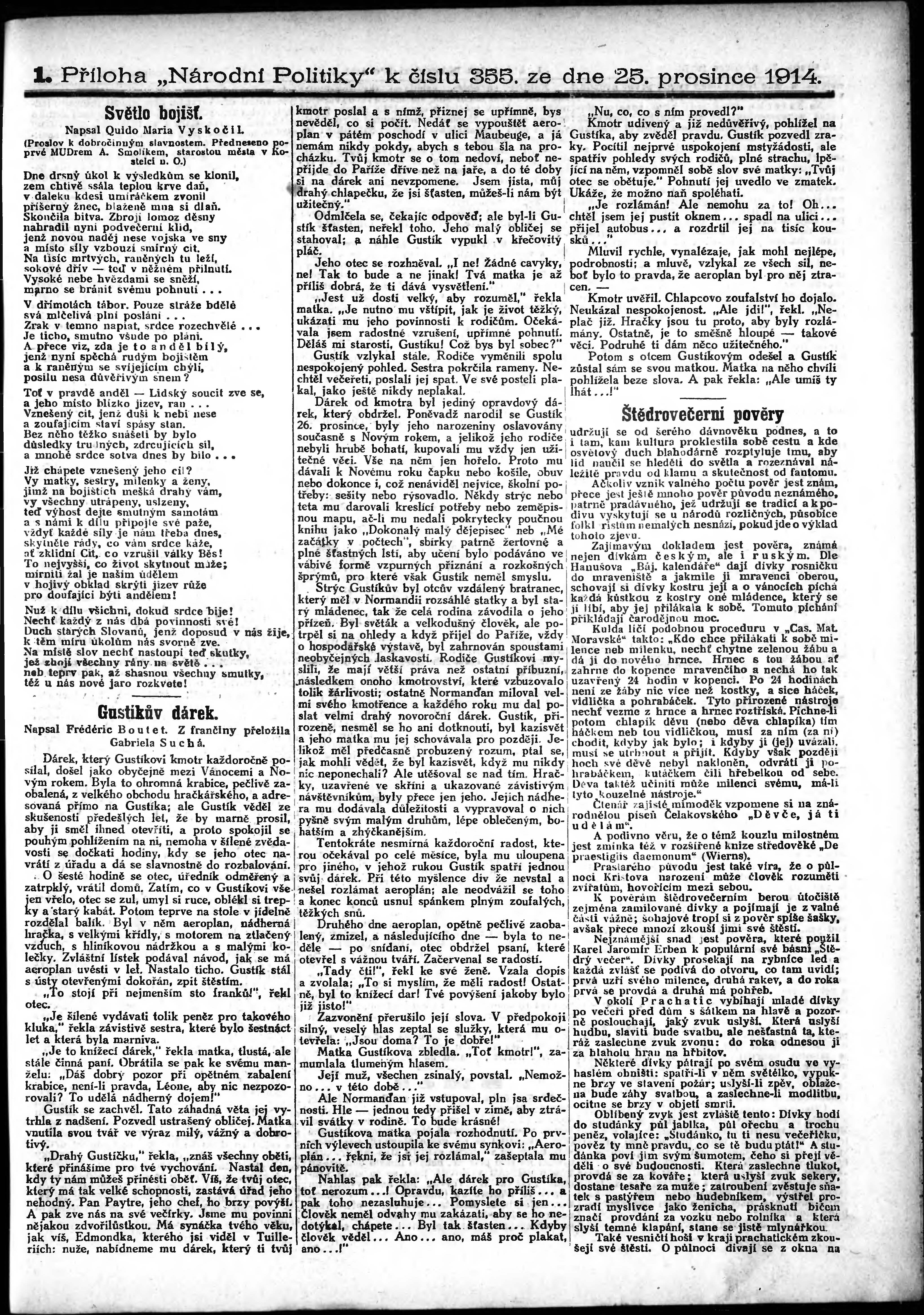 * Datum vydání výtisku: 25.12.1914 Číslo výtisku: 355 Typ výtisku: příloha Poznámky k výtisku: 1. příloha;
