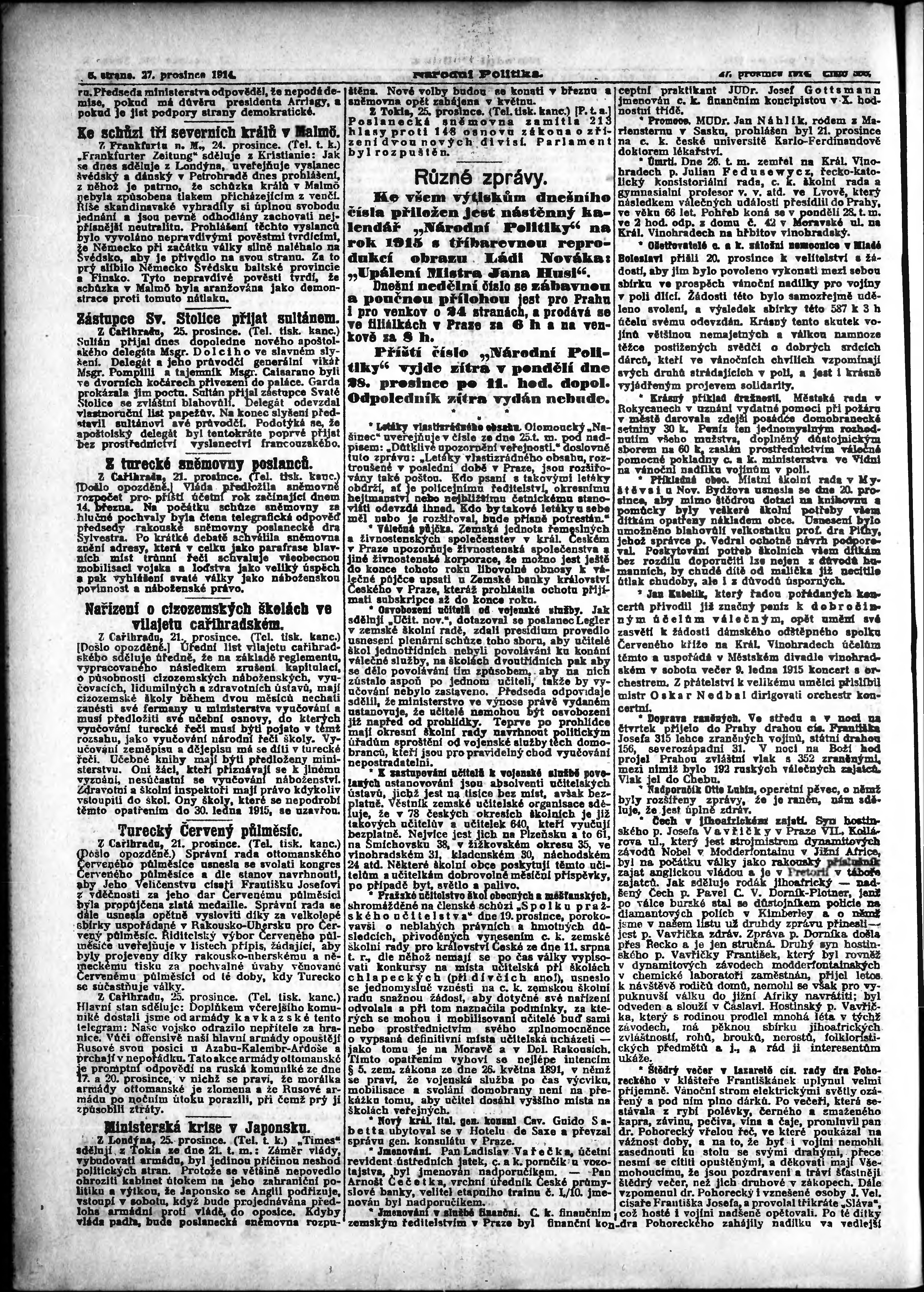 * Datum vydání výtisku: 27.12.1914 Číslo výtisku: 356 Poznámky k výtisku: ranní vydání; vydání pro Prahu;