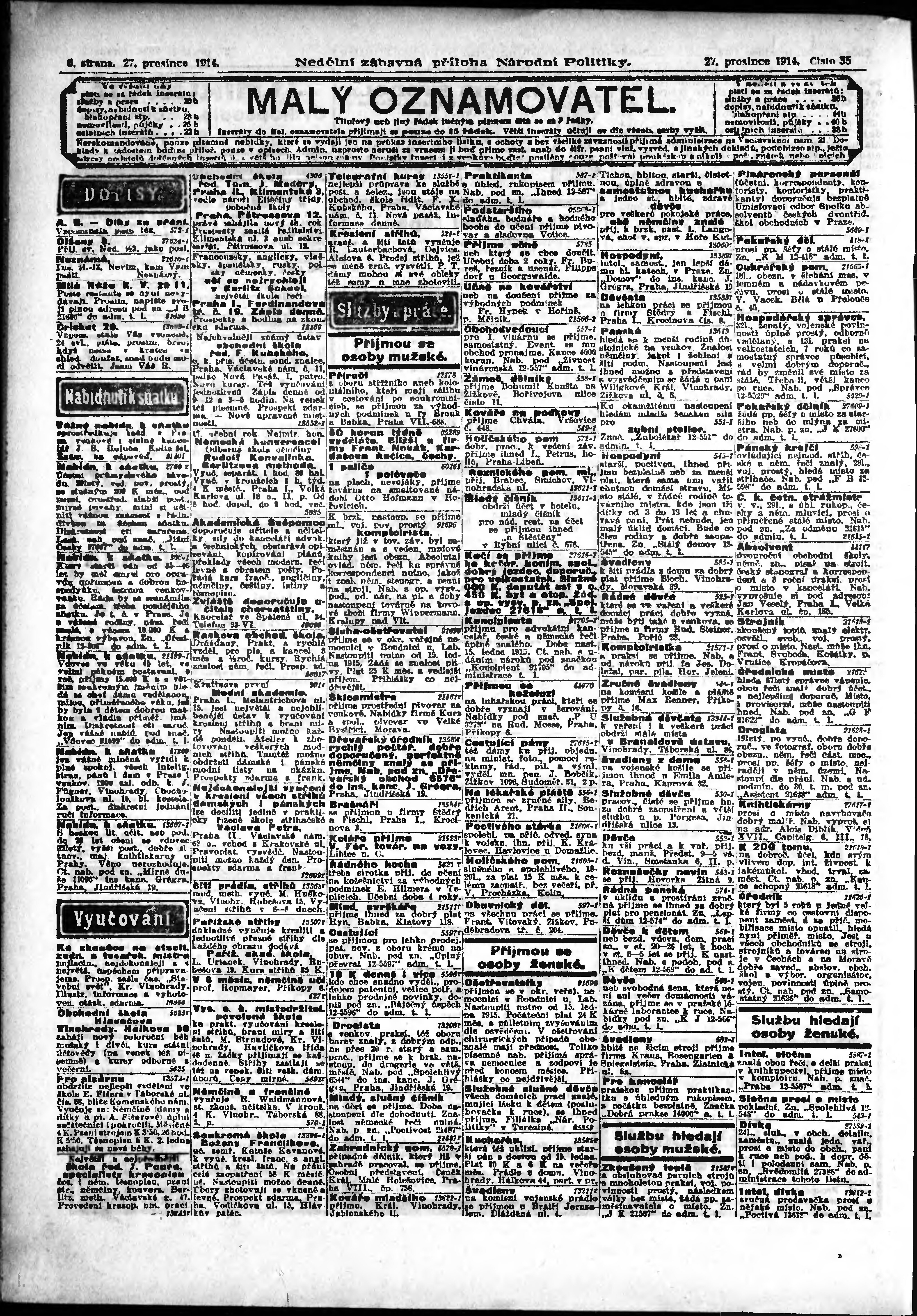 * Datum vydání výtisku: 27.12.1914 Číslo výtisku: 356 Typ výtisku: příloha
