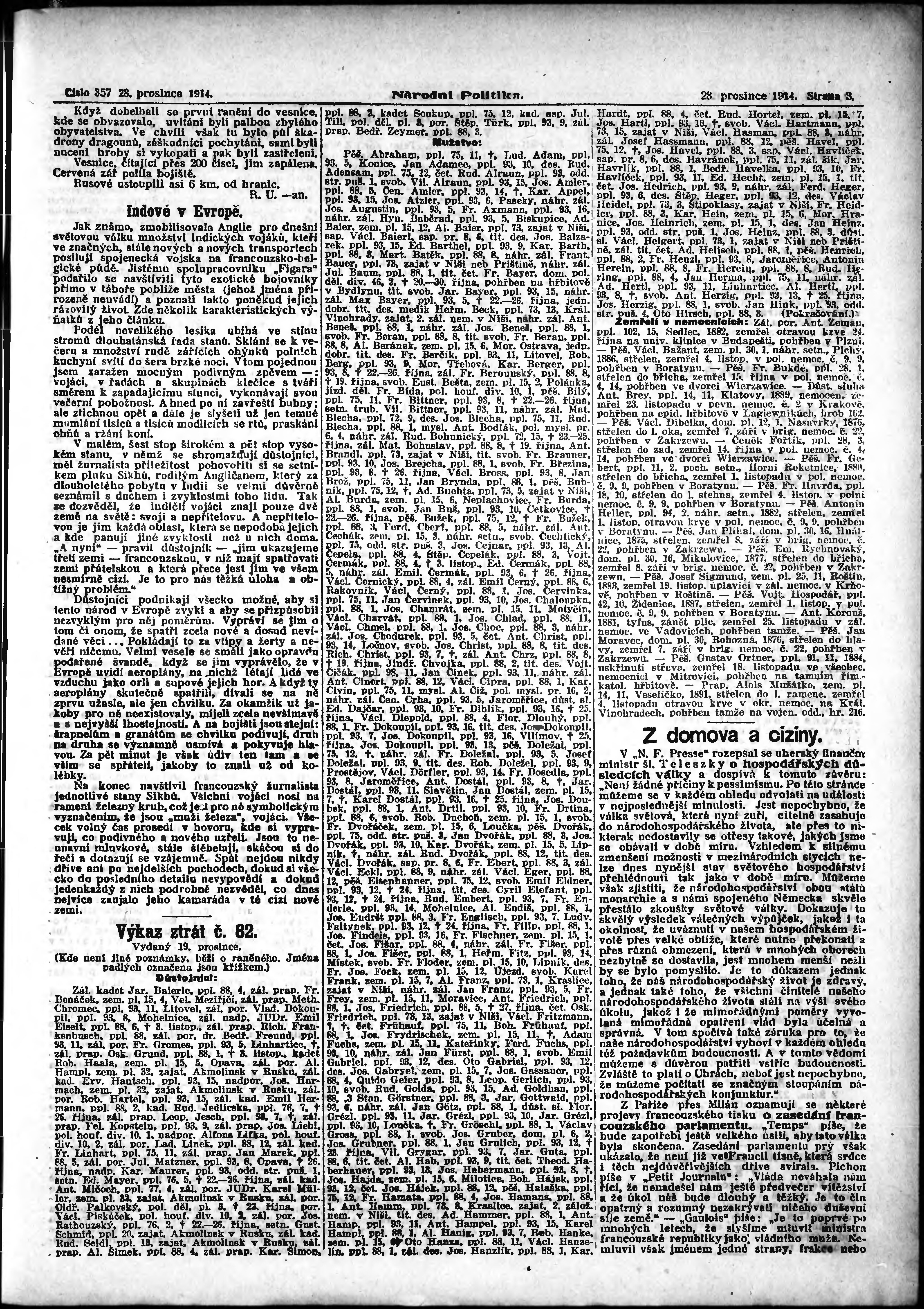 * Datum vydání výtisku: 28.12.1914 Číslo výtisku: 357 Poznámky k výtisku: ranní vydání;