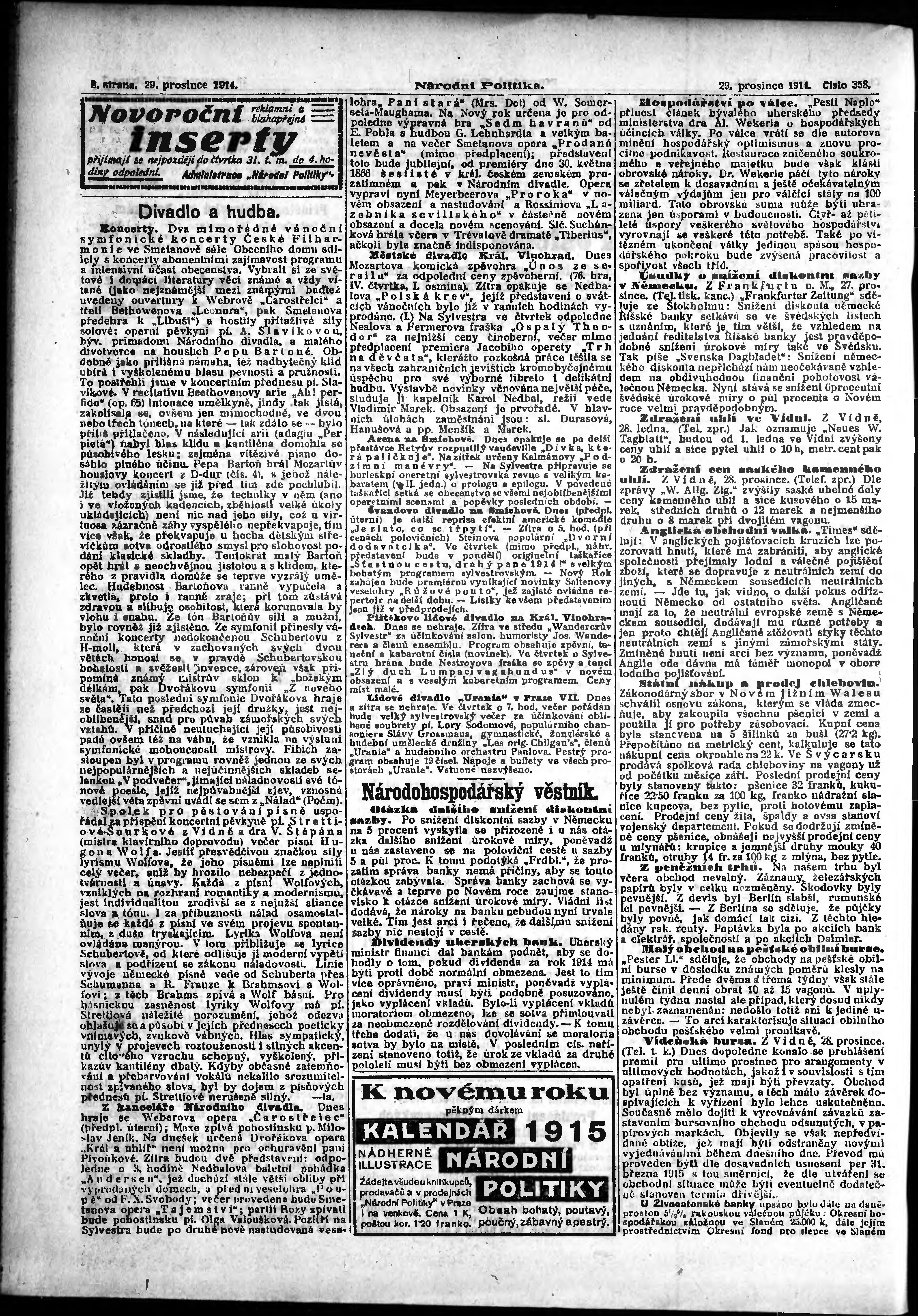* Datum vydání výtisku: 29.12.1914 Číslo výtisku: 358 Poznámky k výtisku: ranní vydání; vydání pro Prahu;