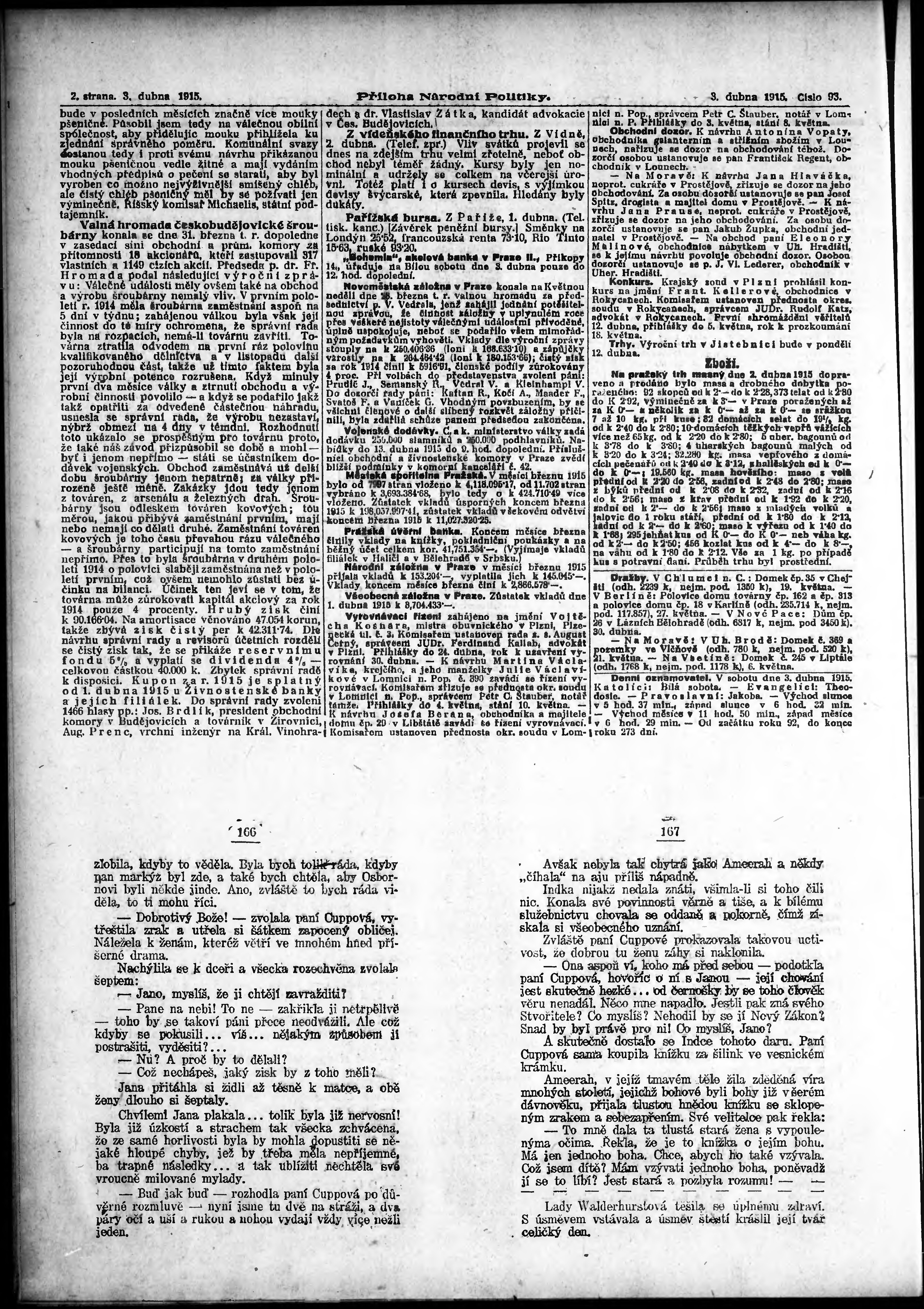 * Datum vydání výtisku: 3.4.1915 Číslo výtisku: 93 Typ výtisku: příloha