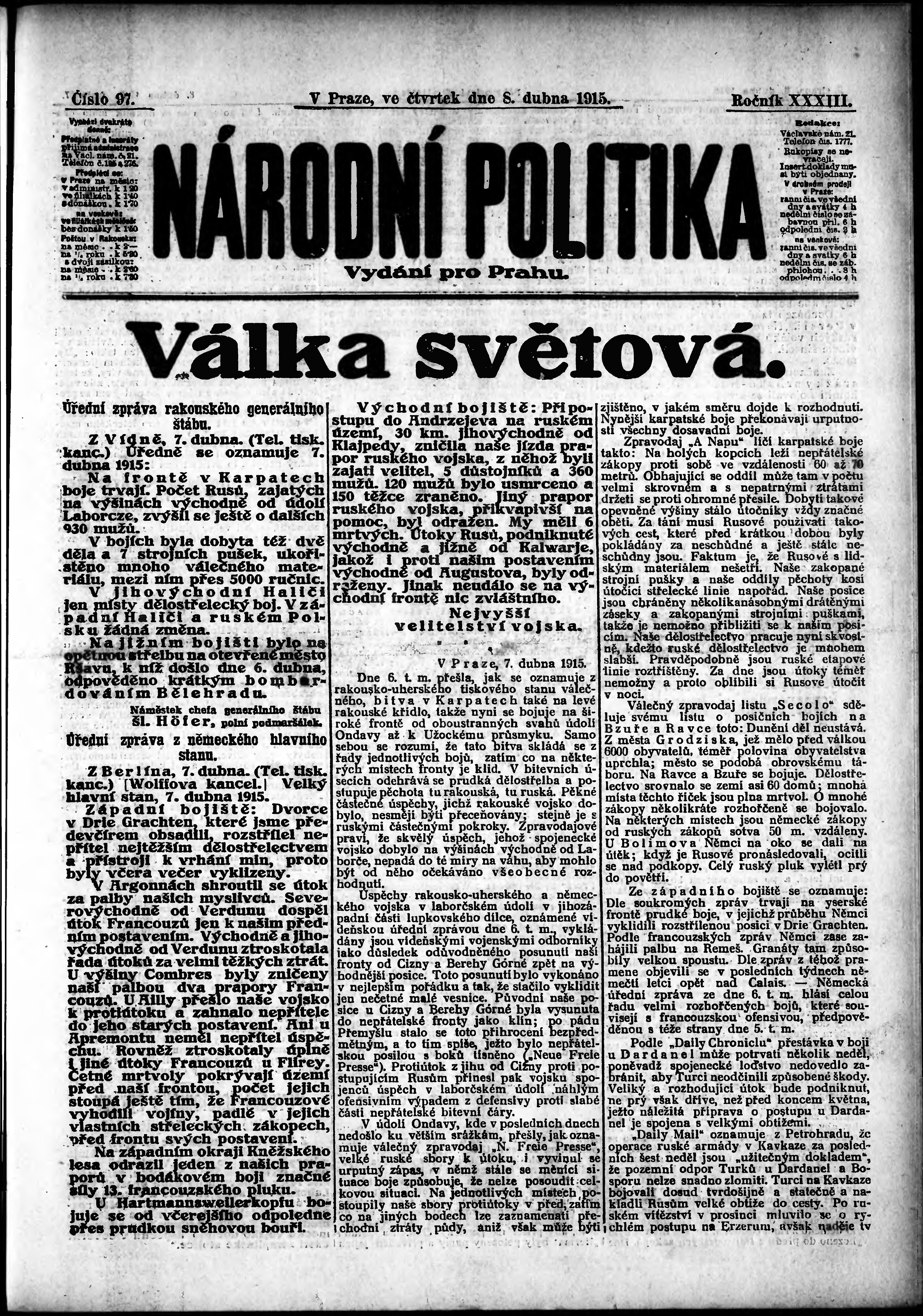 ranní vydání; vydání pro Prahu;
