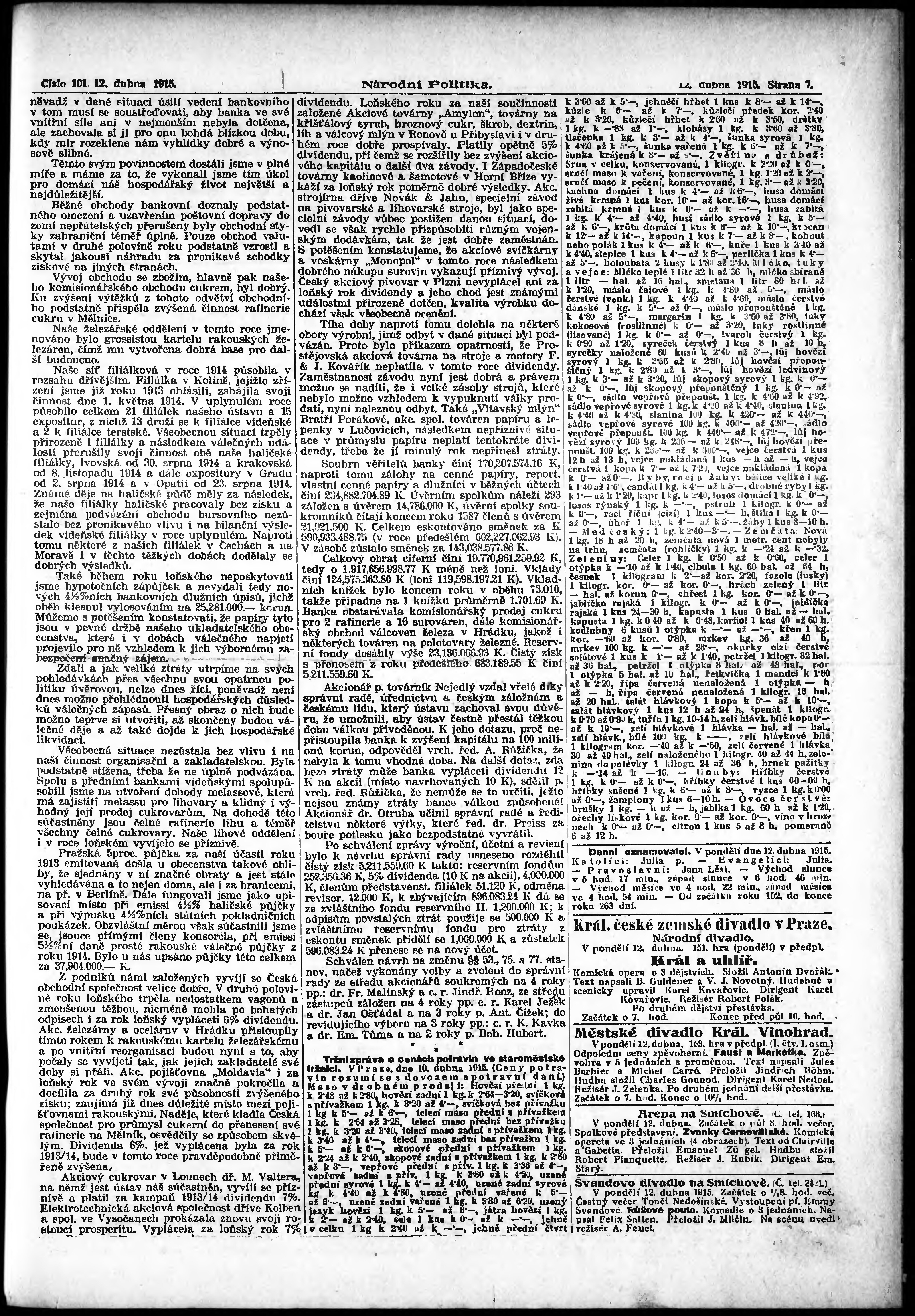 * Datum vydání výtisku: 12.4.1915 Číslo výtisku: 101 Poznámky k výtisku: ranní vydání;