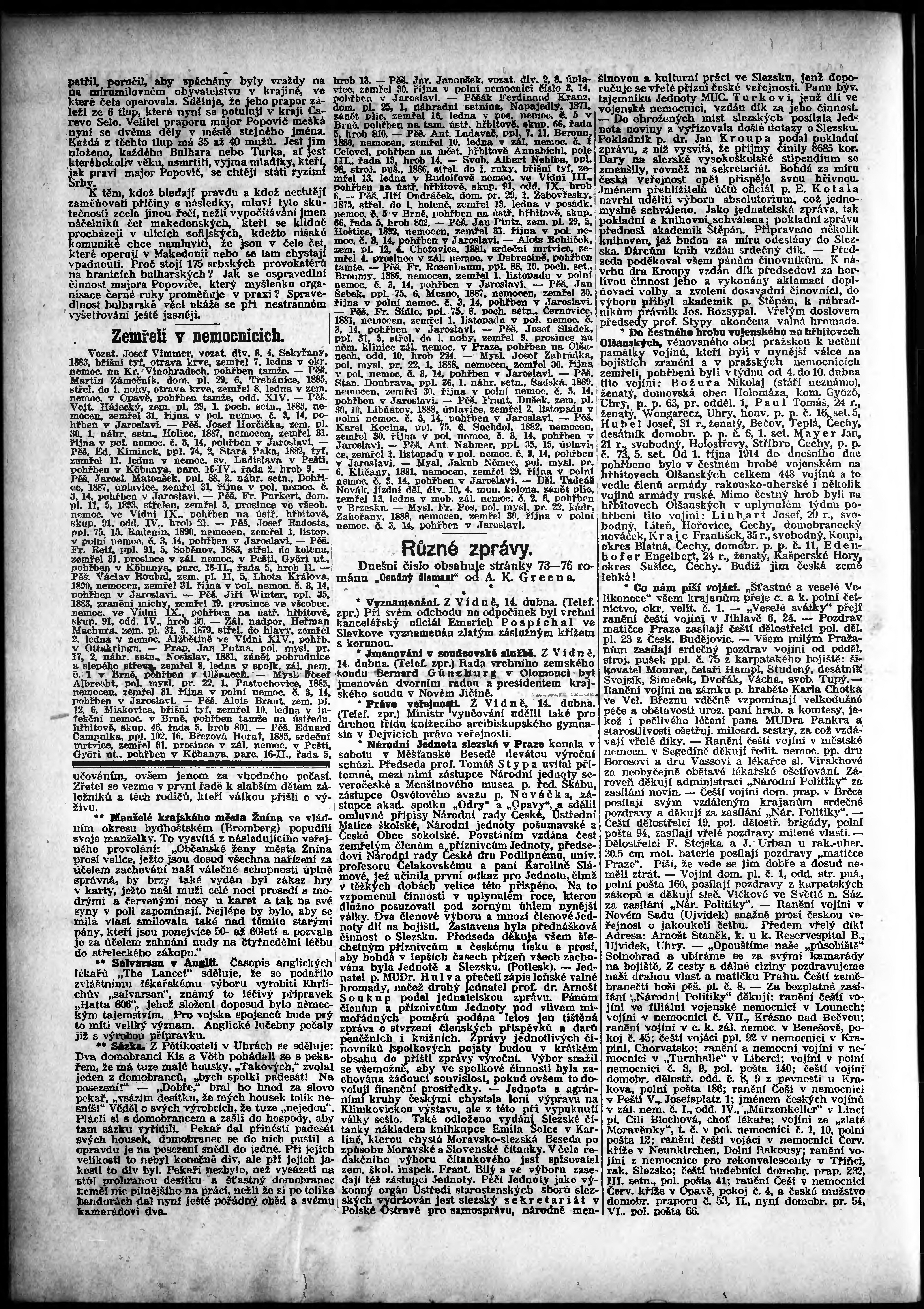 * Datum vydání výtisku: 14.4.1915 Číslo výtisku: 103 Poznámky k výtisku: odpolední vydání;