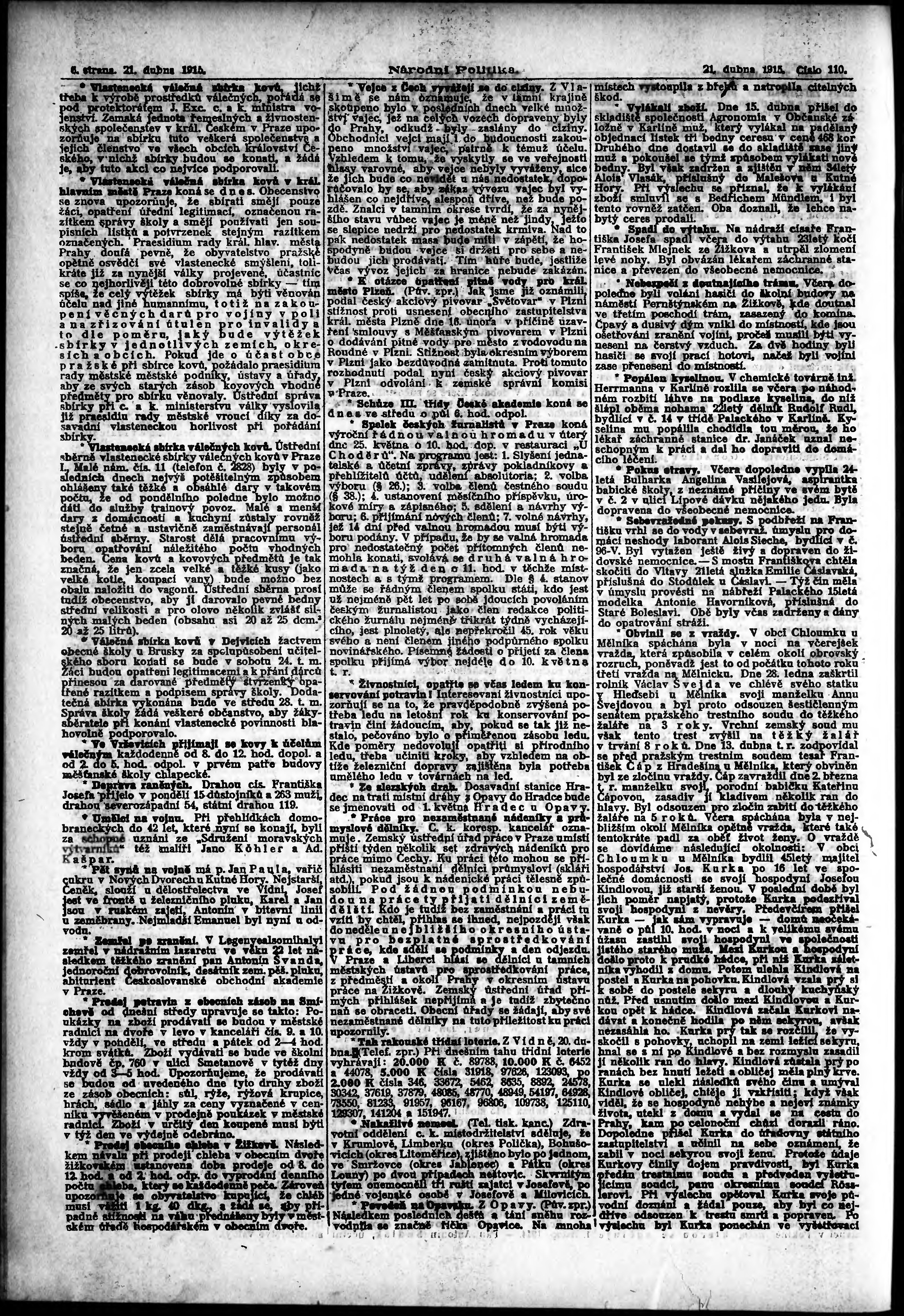 ranní vydání; vydání pro Prahu;