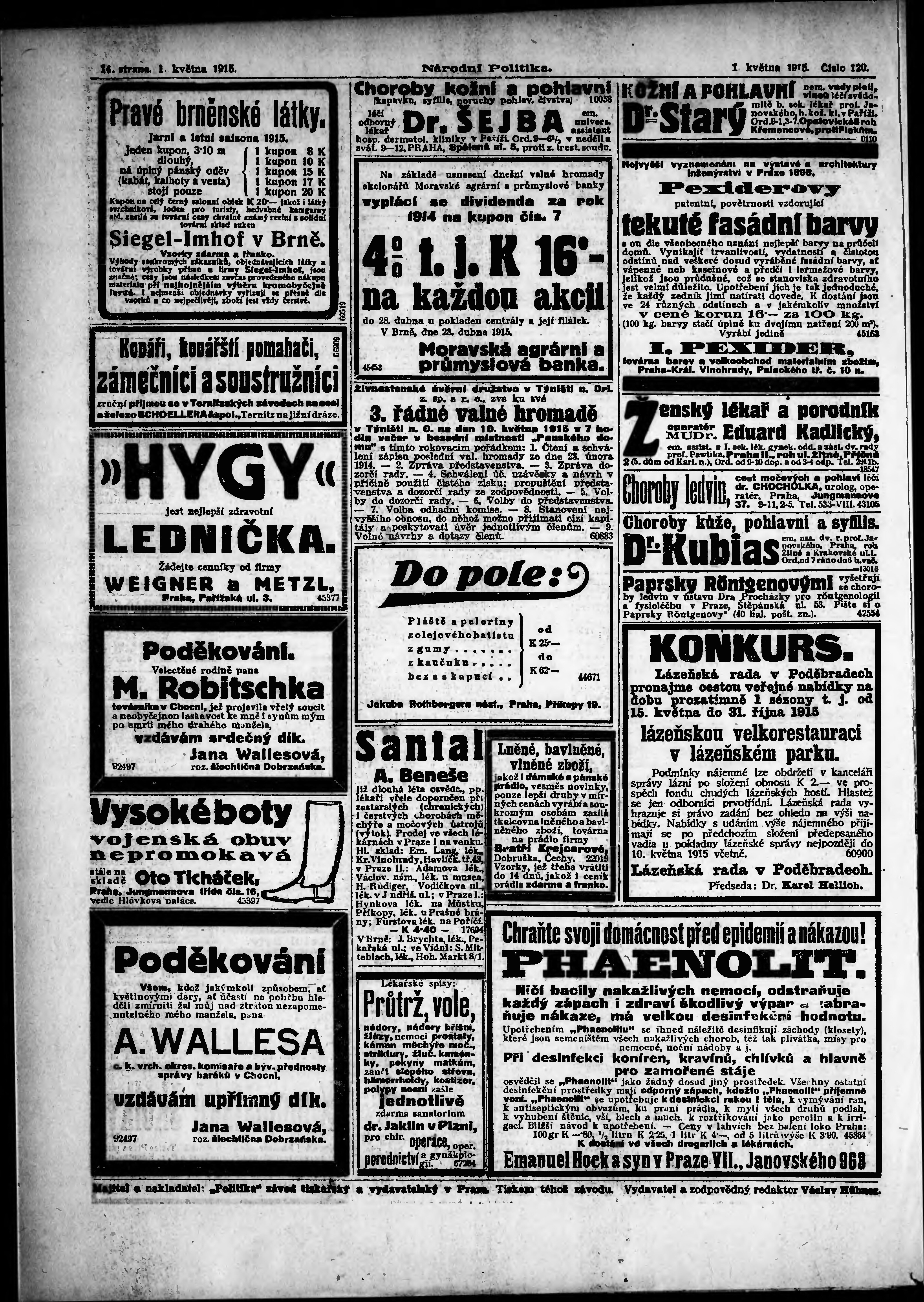 * Datum vydání výtisku: 1.5.1915 Číslo výtisku: 120 Typ výtisku: příloha Poznámky k výtisku: s. 5 - 6, 9 - 10 není k dispozici;