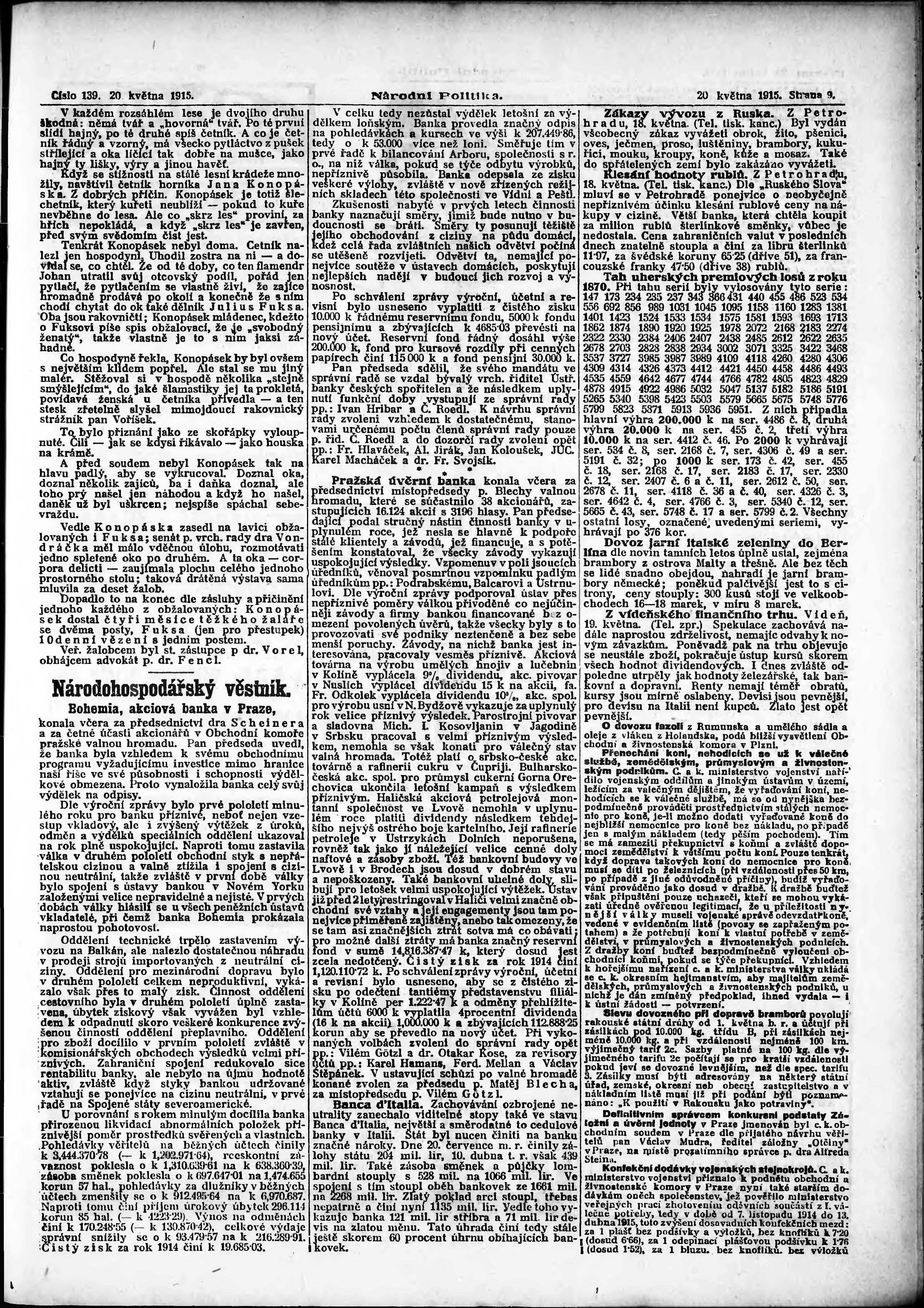 * Datum vydání výtisku: 20.5.1915 Číslo výtisku: 139 Poznámky k výtisku: ranní vydání; vydání pro Prahu;