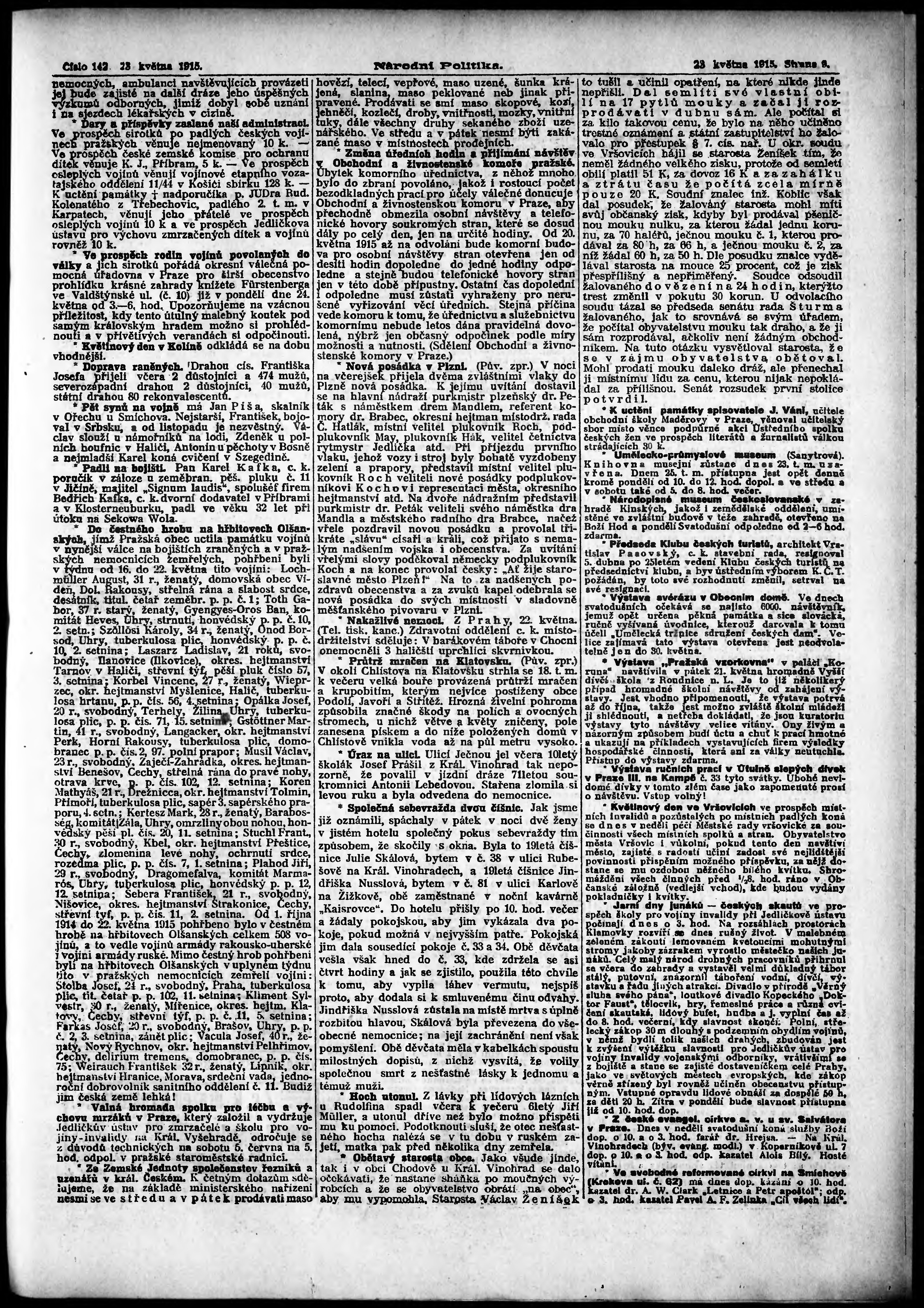 * Datum vydání výtisku: 23.5.1915 Číslo výtisku: 142 Poznámky k výtisku: ranní vydání; vydání pro Prahu;