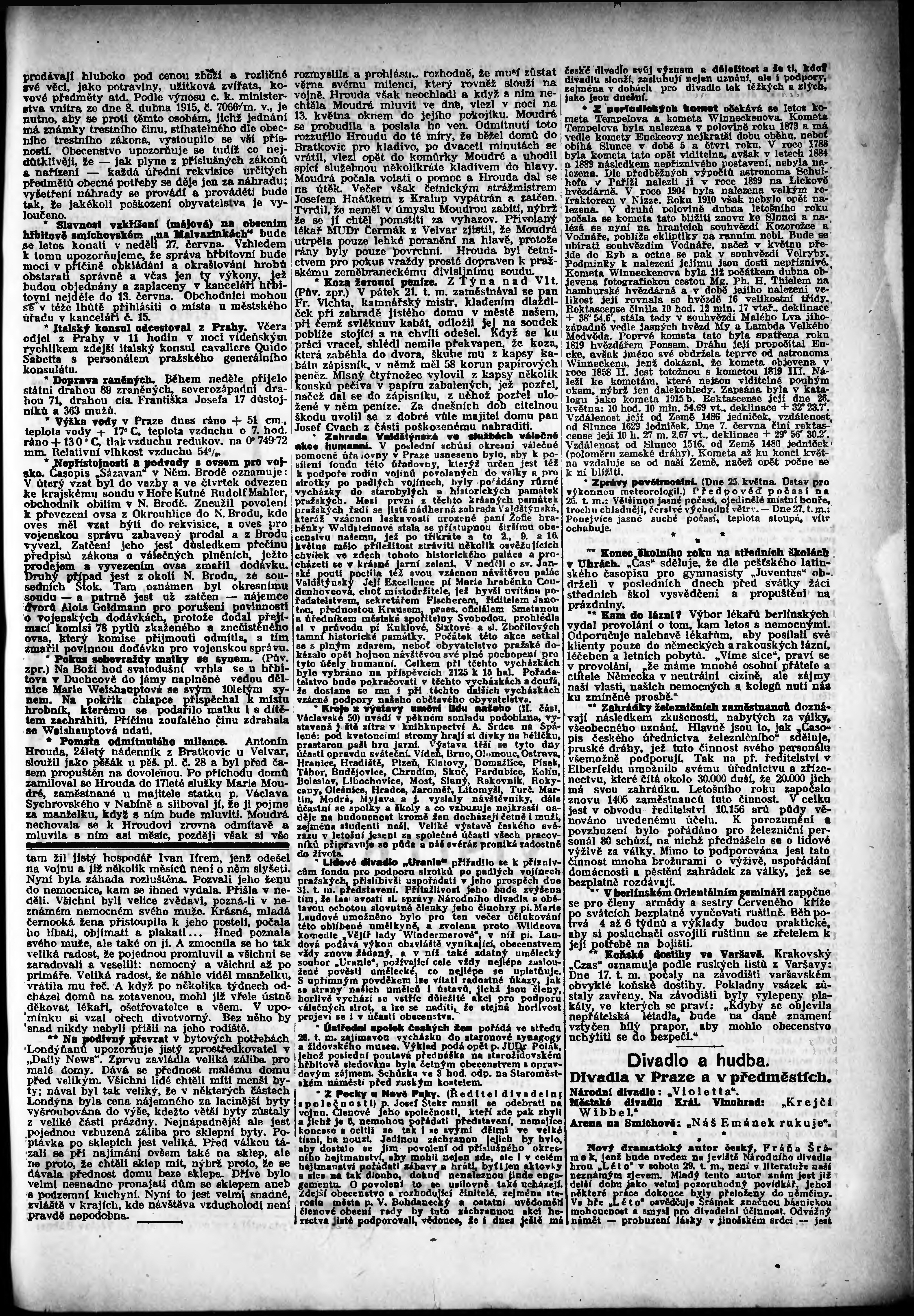 * Datum vydání výtisku: 25.5.1915 Číslo výtisku: 143 Poznámky k výtisku: odpolední vydání;
