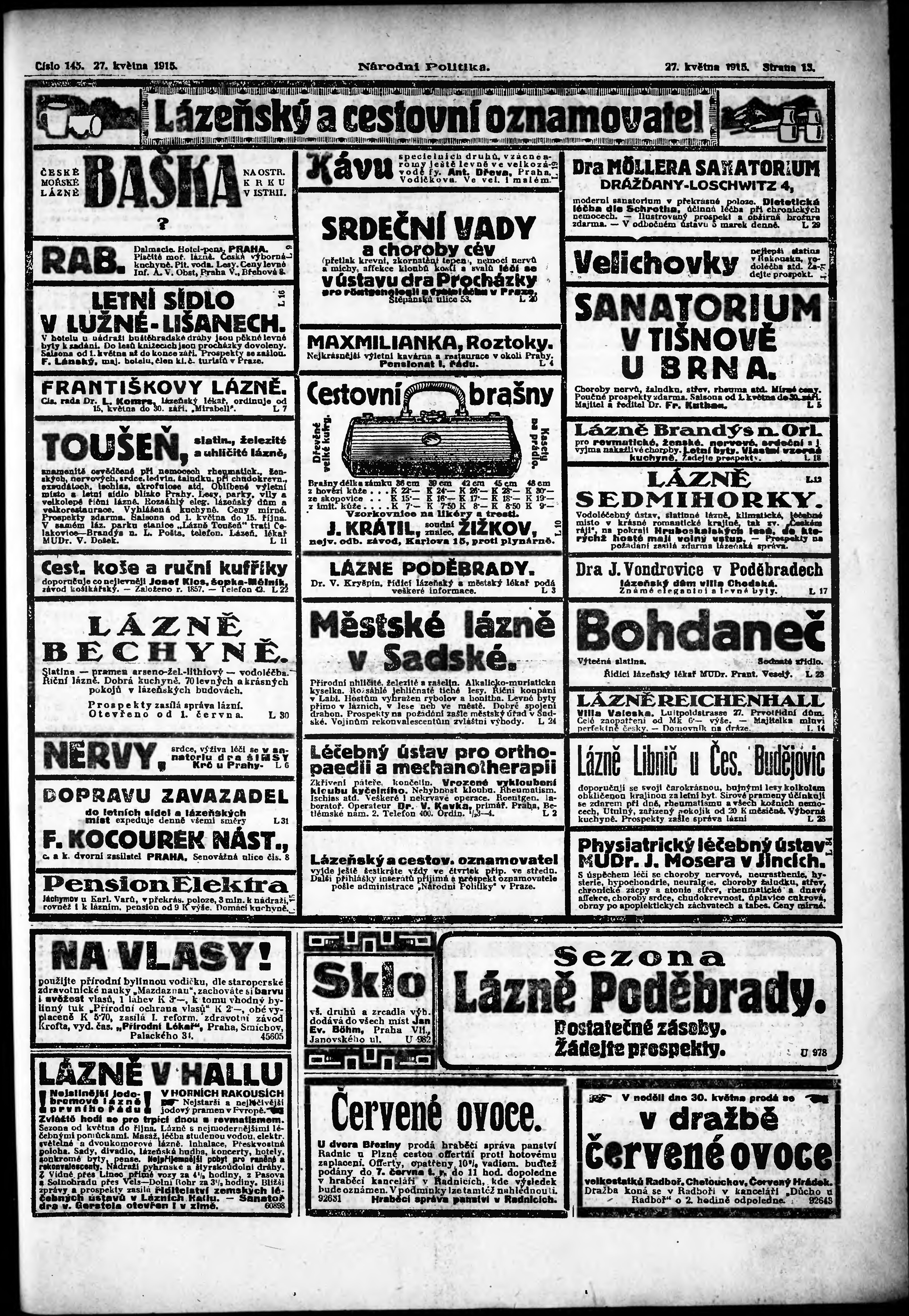 * Datum vydání výtisku: 27.5.1915 Číslo výtisku: 145 Poznámky k výtisku: ranní vydání; vydání pro Prahu;