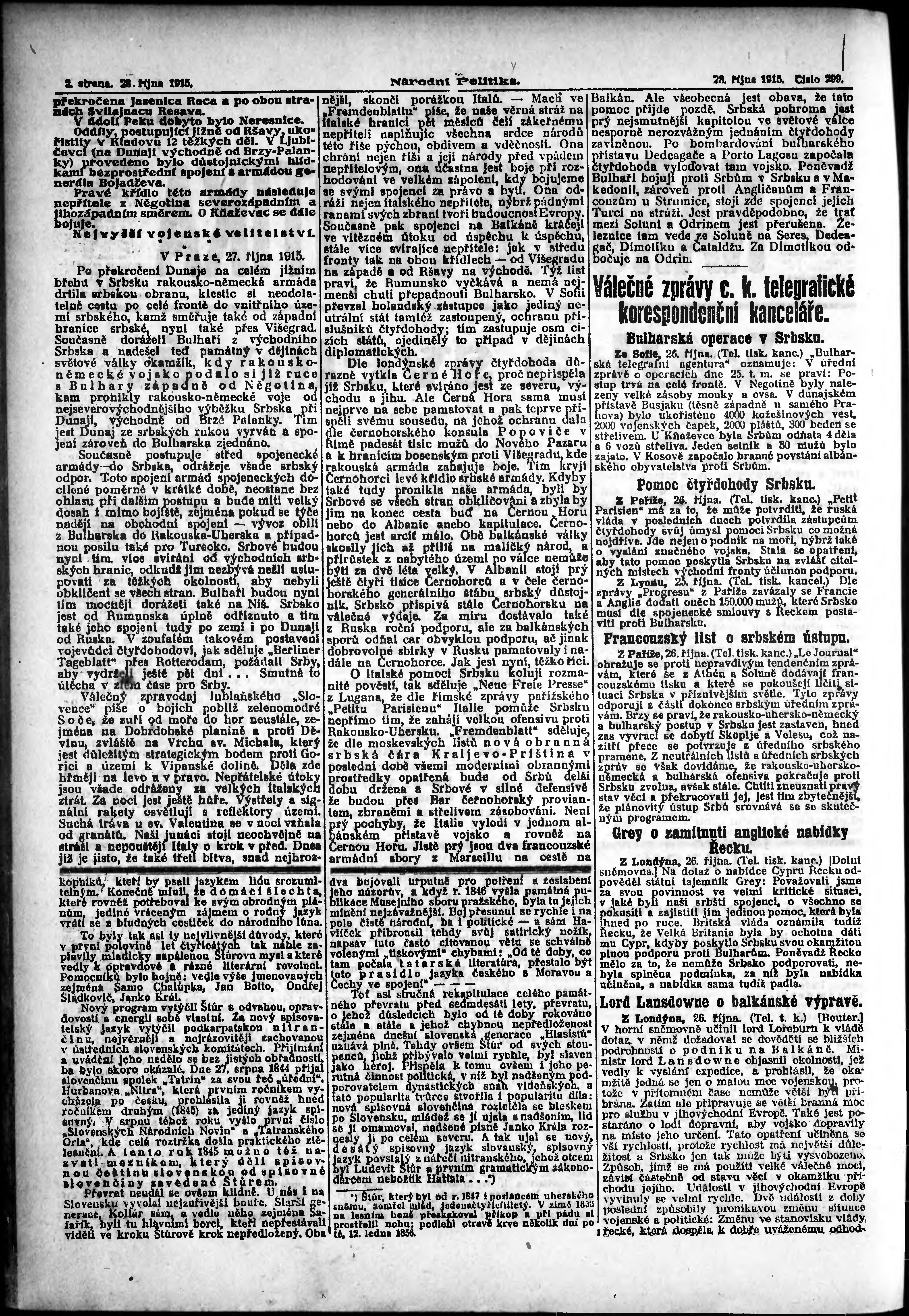 * Datum vydání výtisku: 28.10.1915 Číslo výtisku: 299 Poznámky k výtisku: ranní vydání;