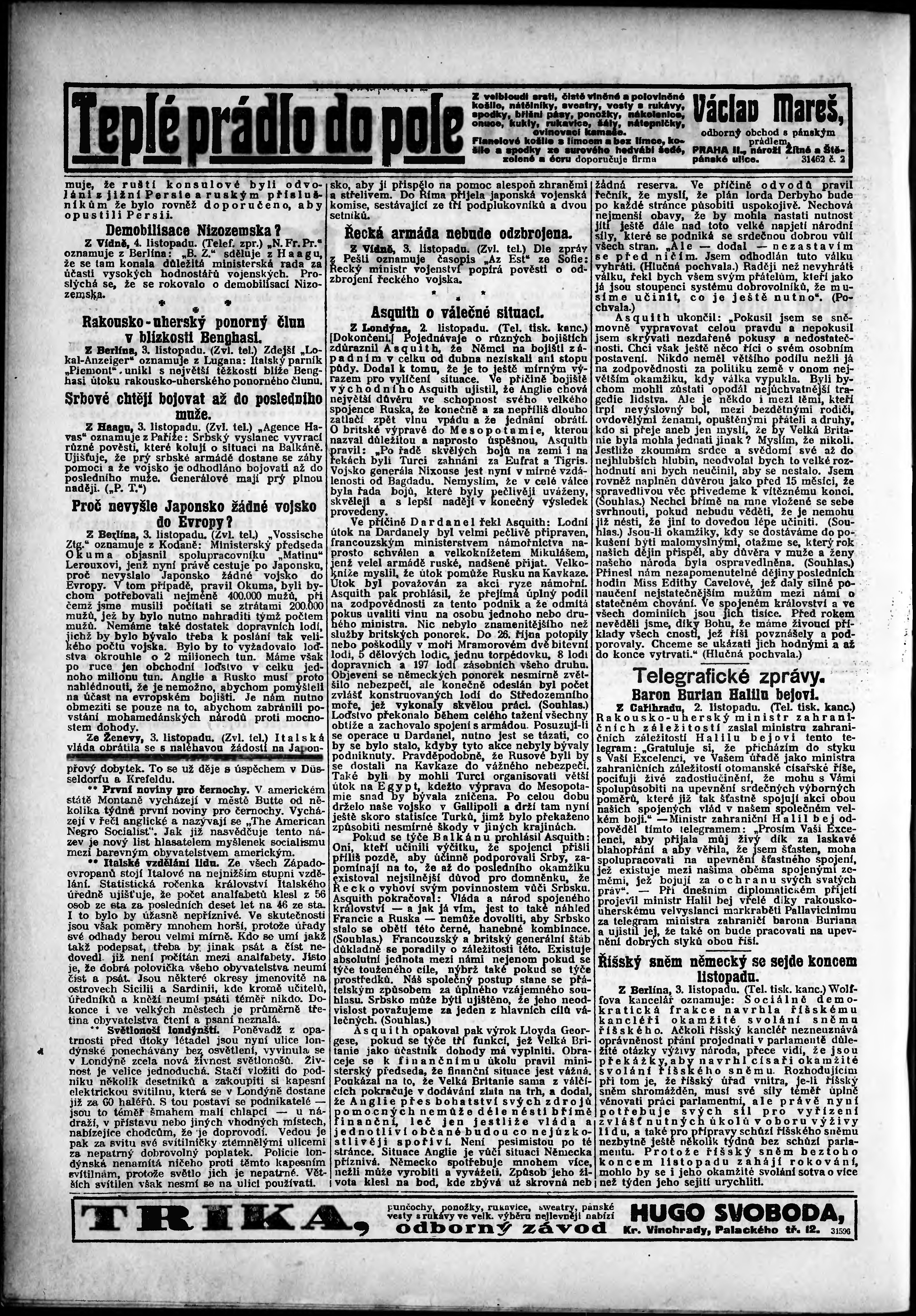 * Datum vydání výtisku: 4.11.1915 Číslo výtisku: 305 Poznámky k výtisku: odpolední vydání;
