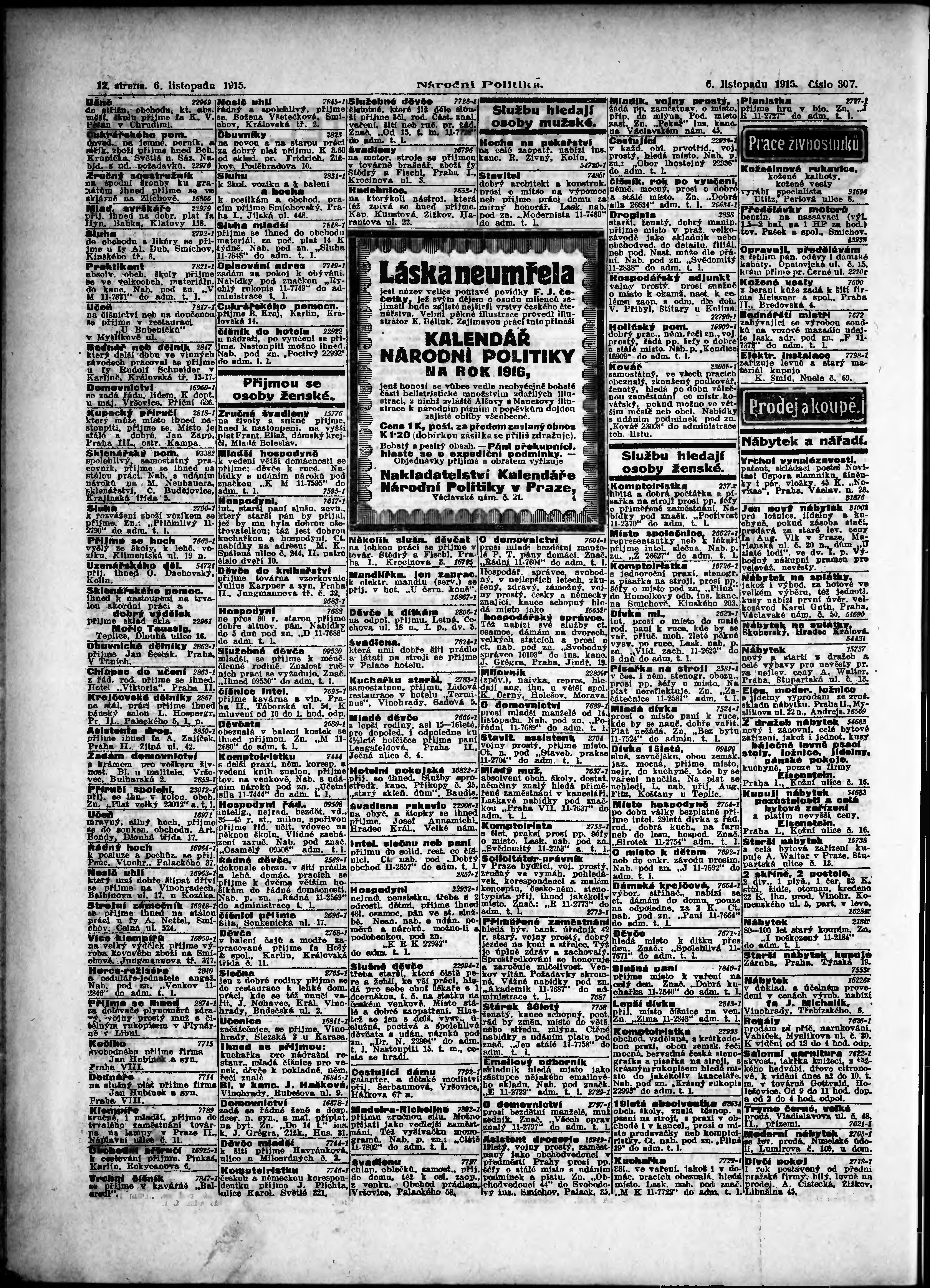 * Datum vydání výtisku: 6.11.1915 Číslo výtisku: 307 Poznámky k výtisku: ranní vydání;