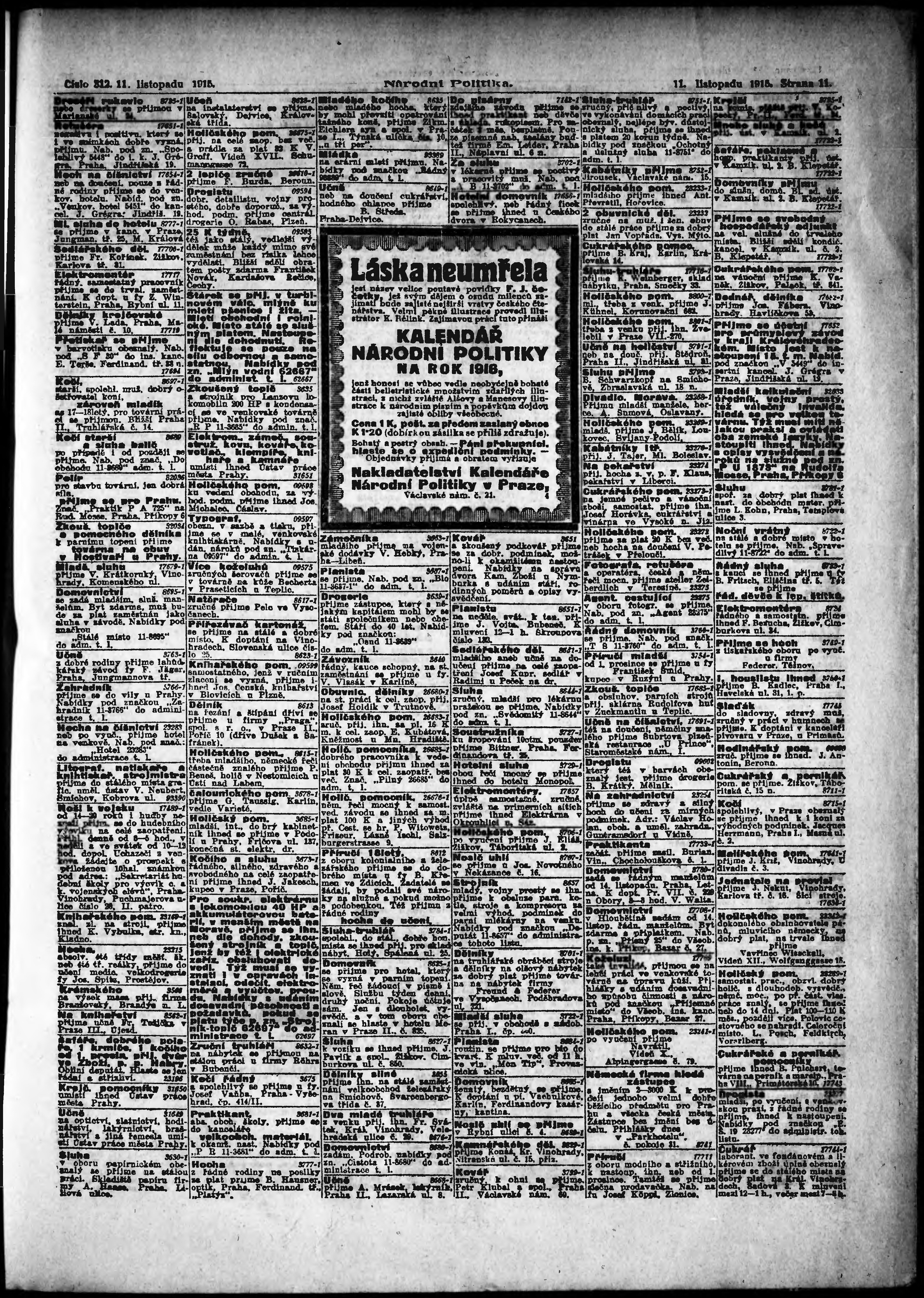 * Datum vydání výtisku: 11.11.1915 Číslo výtisku: 312 Poznámky k výtisku: ranní vydání;