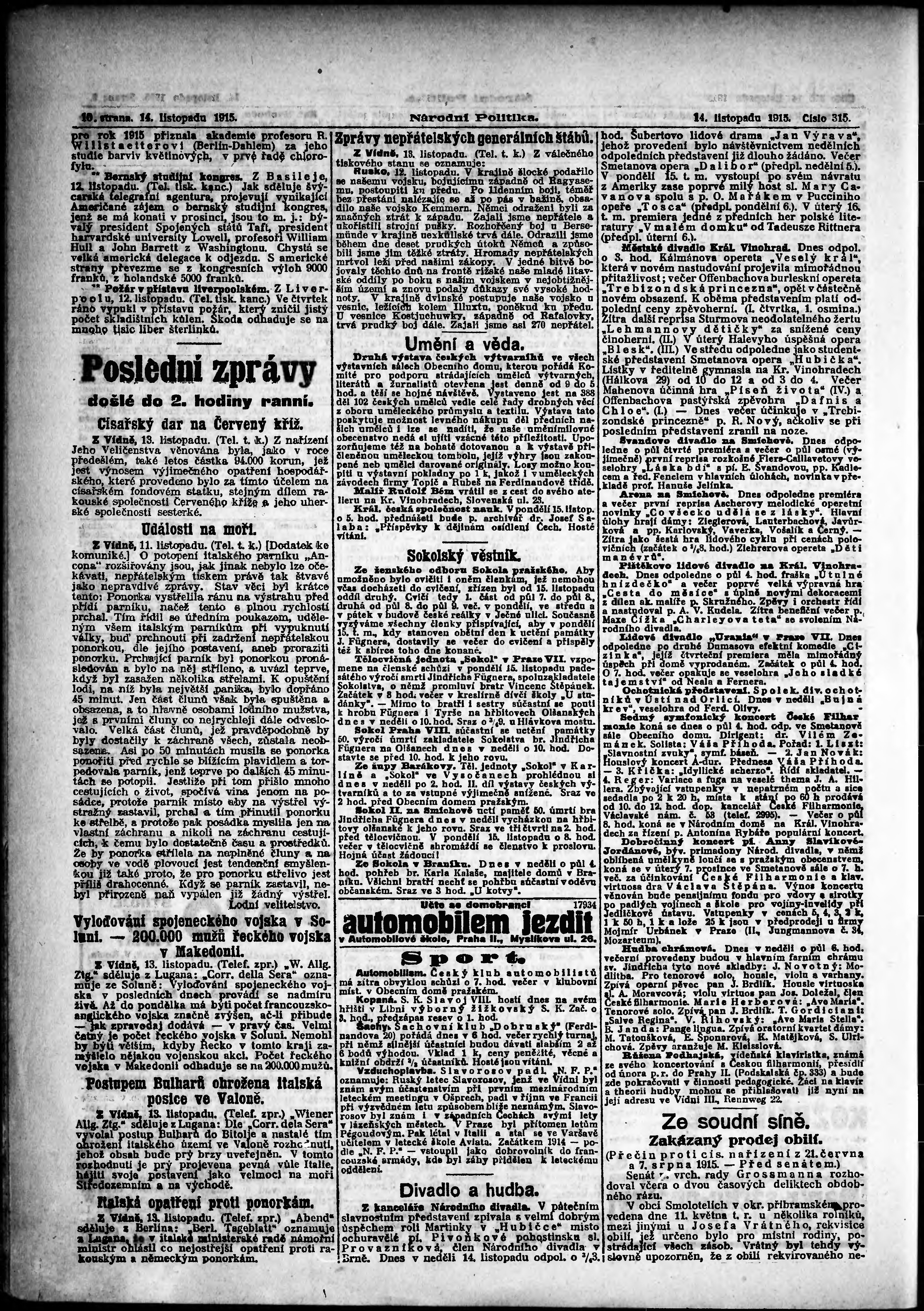 * Datum vydání výtisku: 14.11.1915 Číslo výtisku: 315 Poznámky k výtisku: ranní vydání;