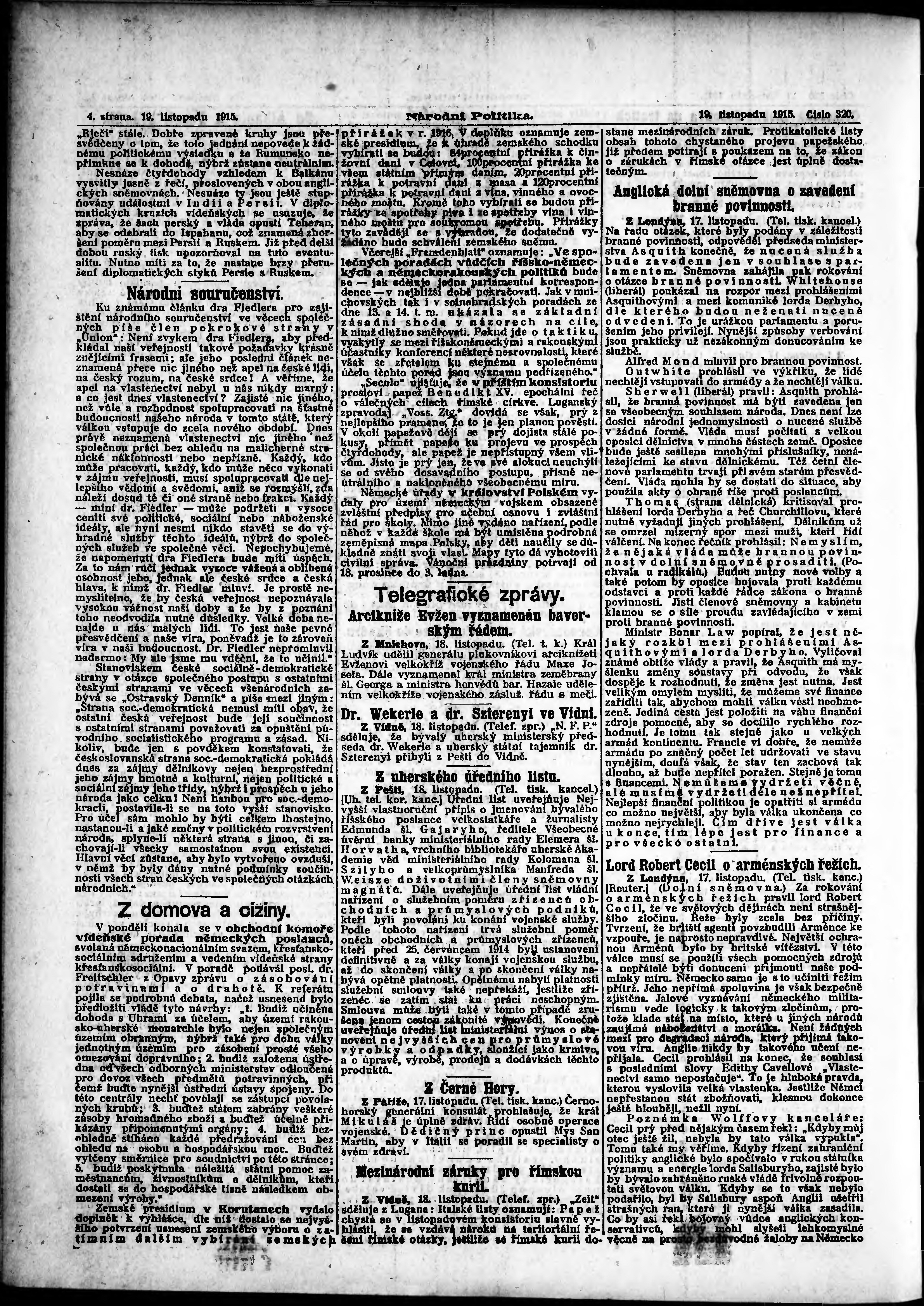 * Datum vydání výtisku: 19.11.1915 Číslo výtisku: 320 Poznámky k výtisku: ranní vydání;
