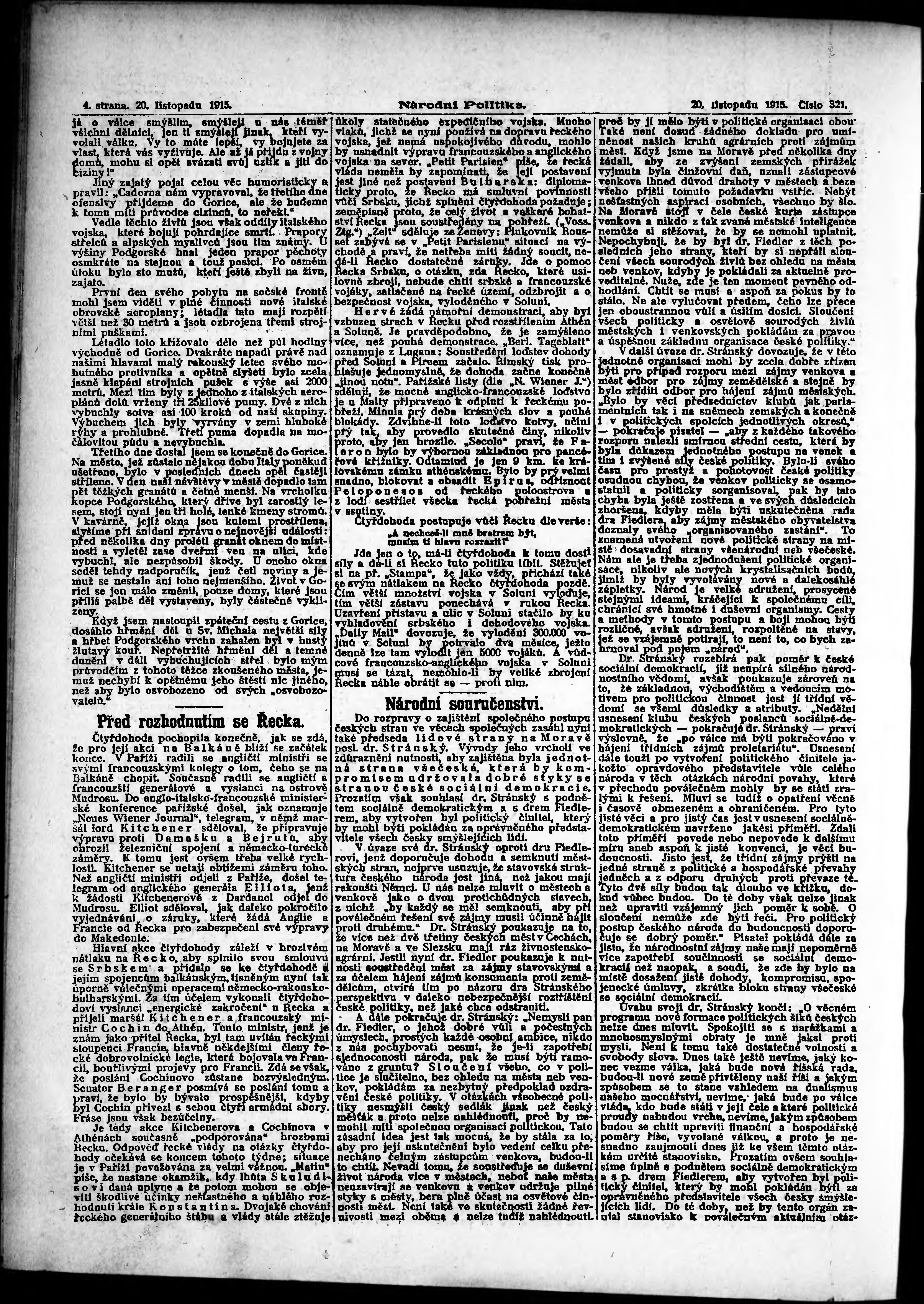 * Datum vydání výtisku: 20.11.1915 Číslo výtisku: 321 Poznámky k výtisku: ranní vydání;