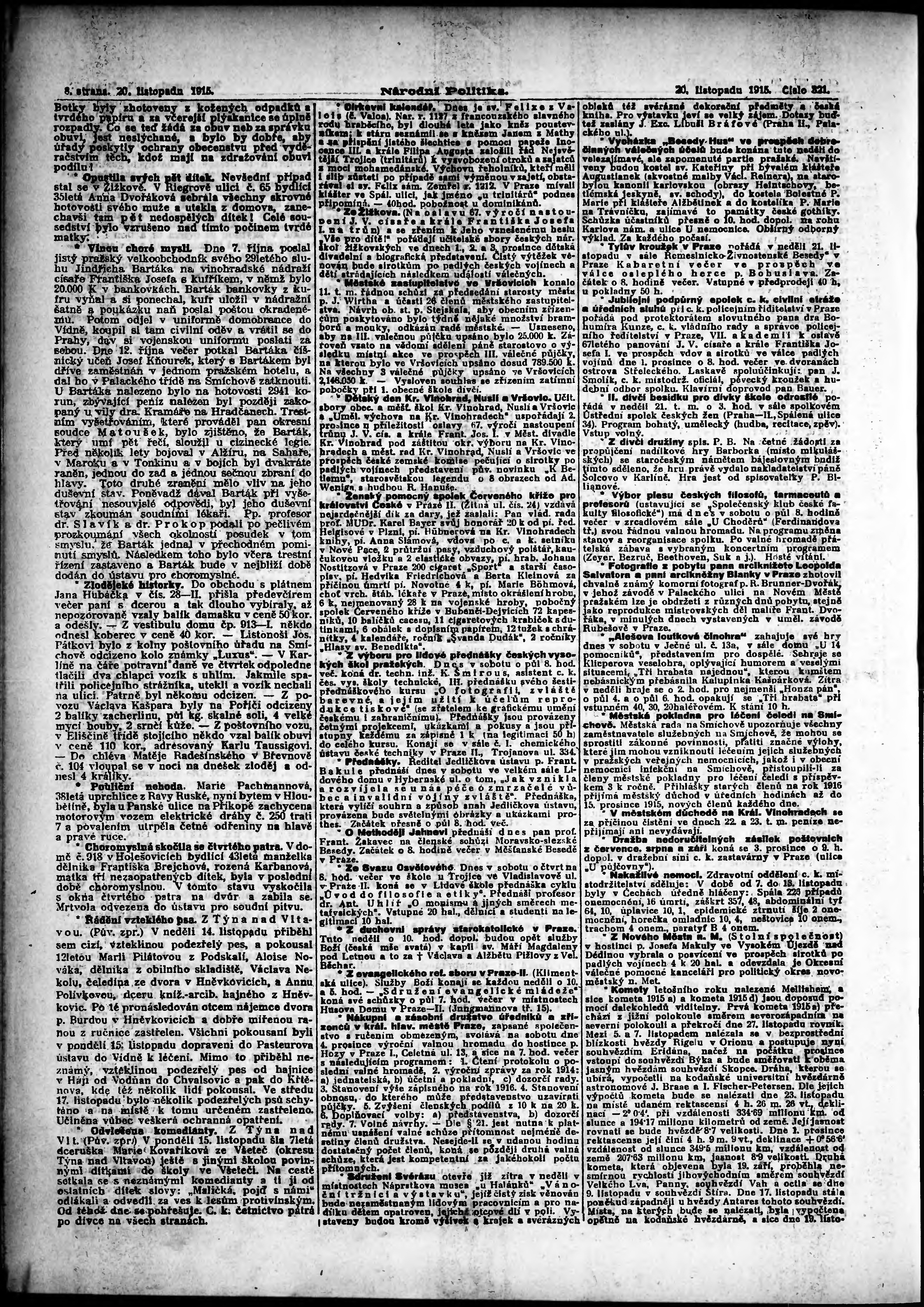 * Datum vydání výtisku: 20.11.1915 Číslo výtisku: 321 Poznámky k výtisku: ranní vydání;